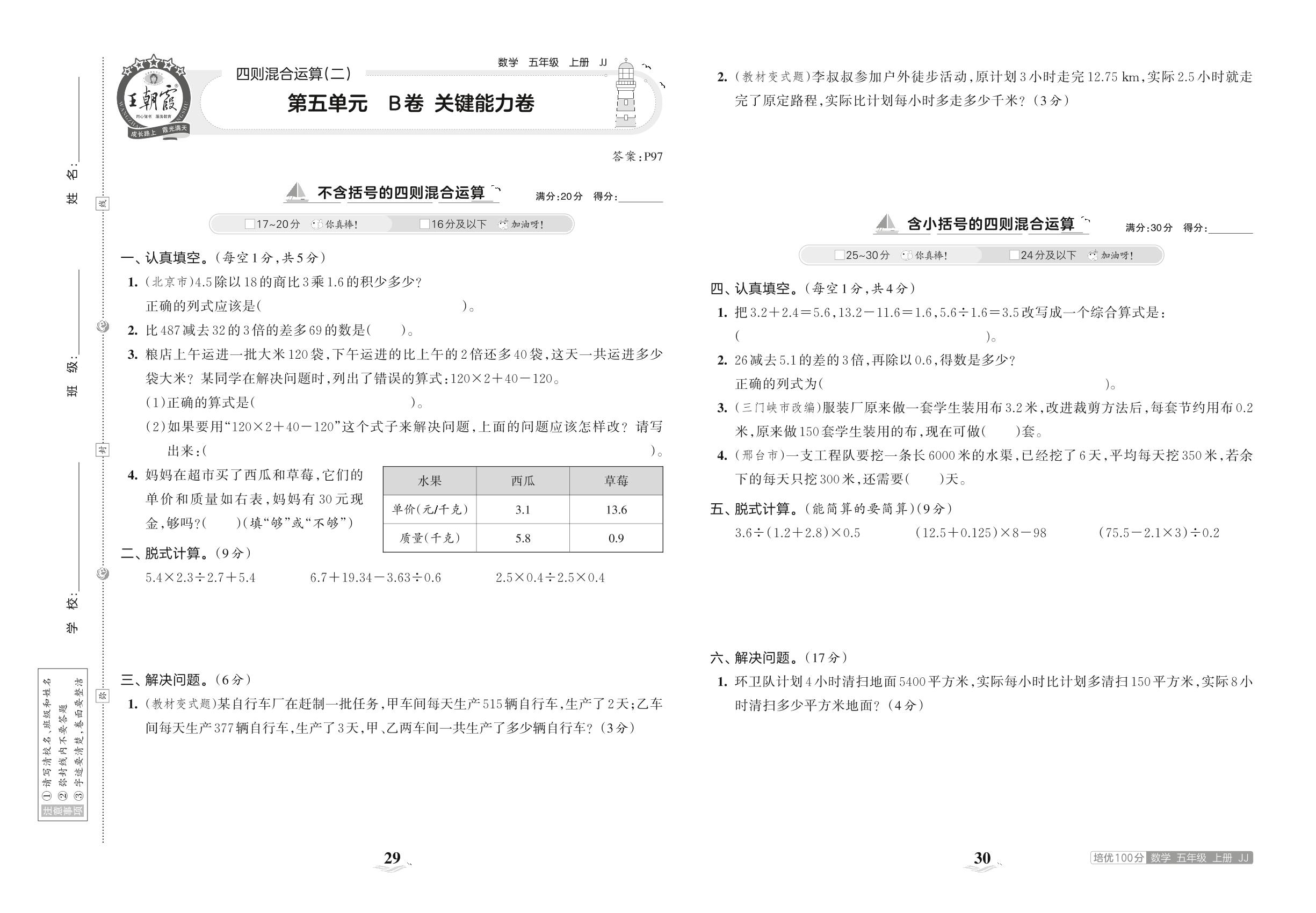 2023上册五年级数学冀教版 第五单元 B卷 关键能力卷
