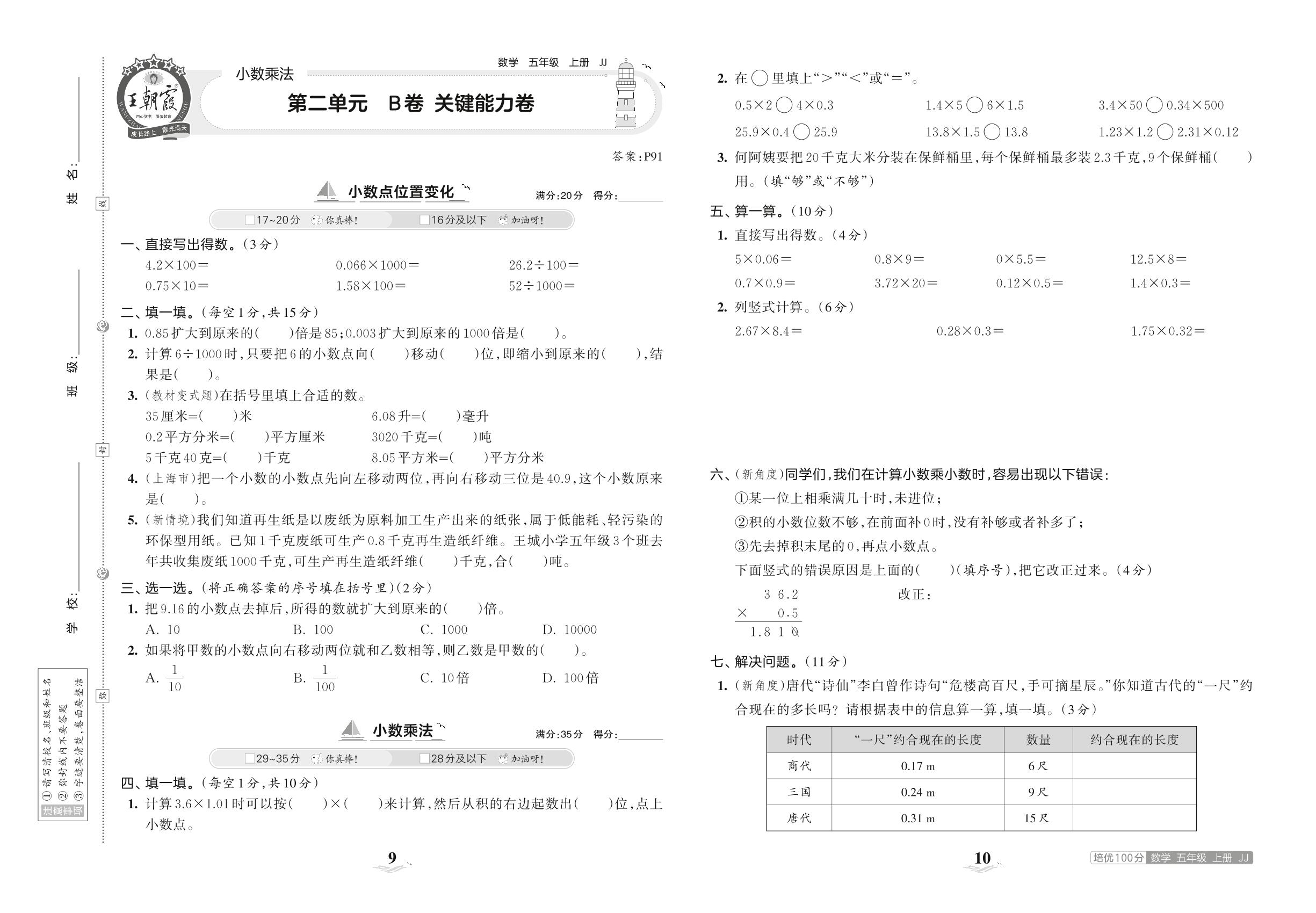 2023上册五年级数学冀教版 第二单元 B卷 关键能力卷