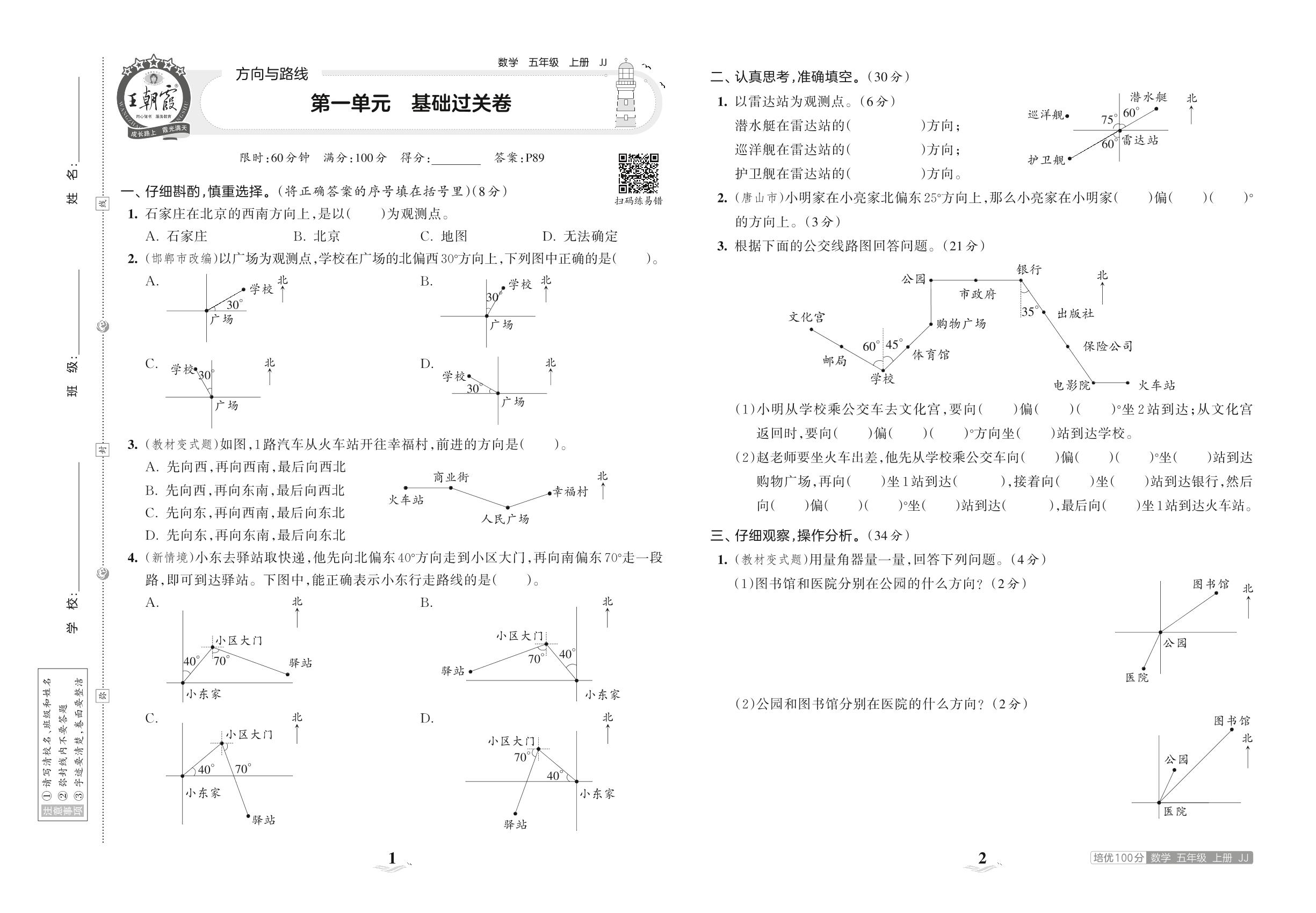 2023上册五年级数学冀教版 第一单元 基础过关卷
