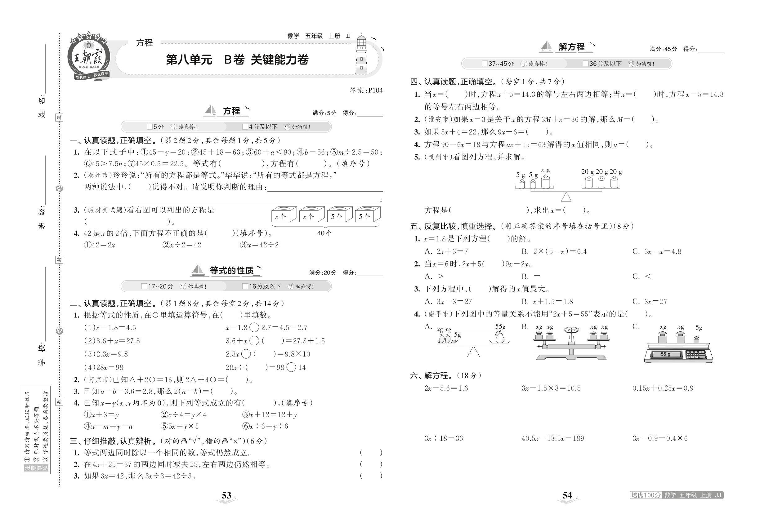 2023上册五年级数学冀教版 第八单元 B卷 关键能力卷