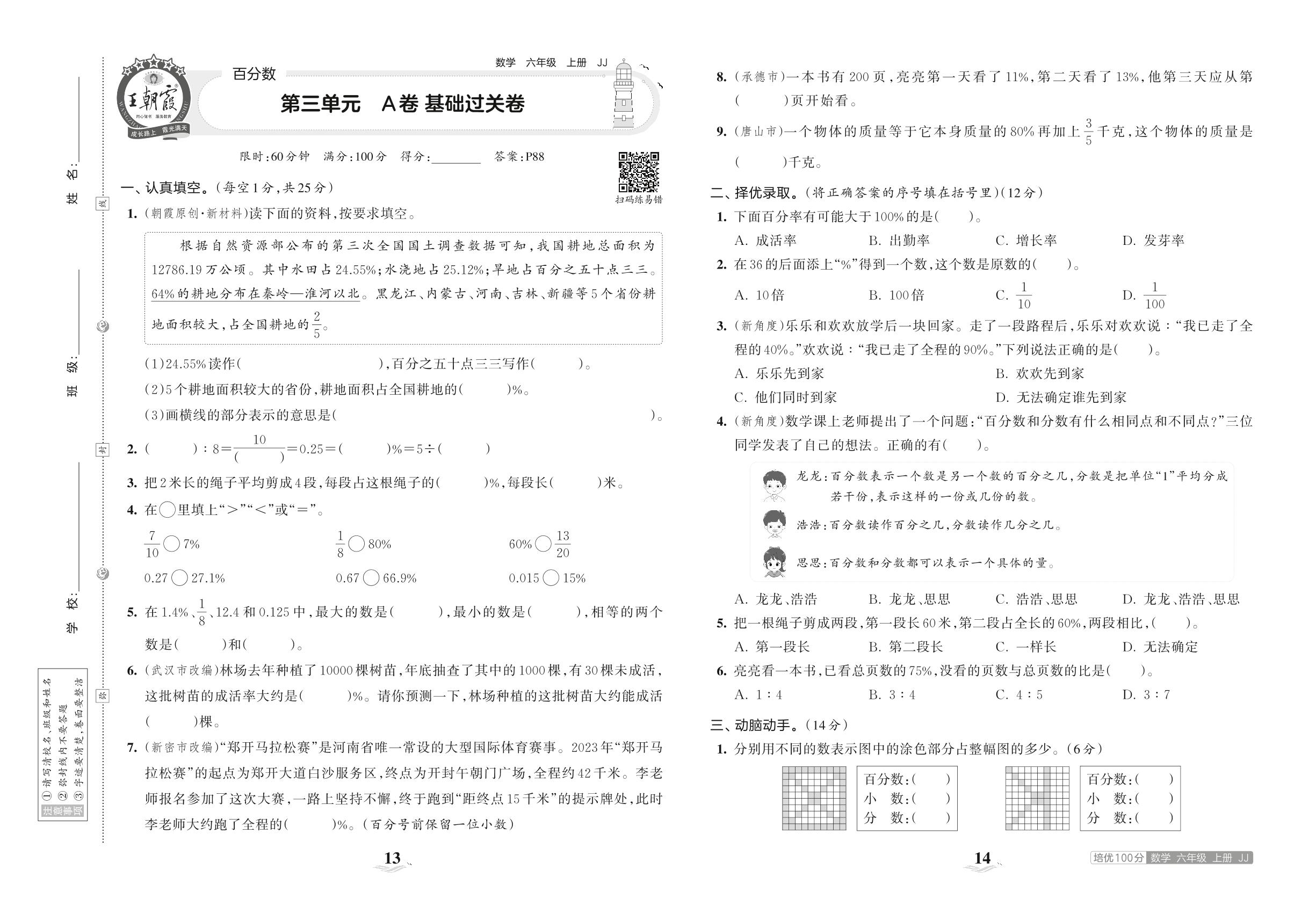 2023上册六年级数学冀教版 第三单元 A卷 基础过关卷