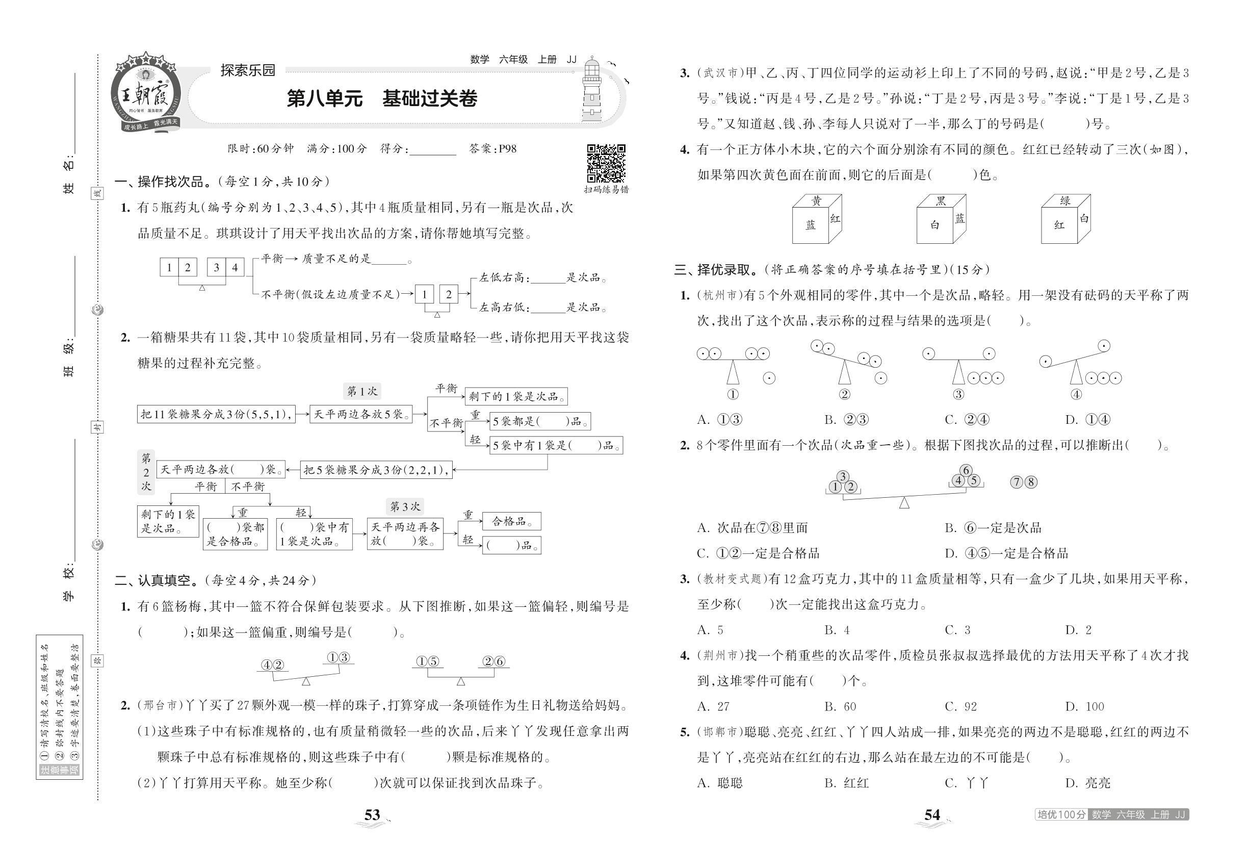 2023上册六年级数学冀教版 第八单元 基础过关卷