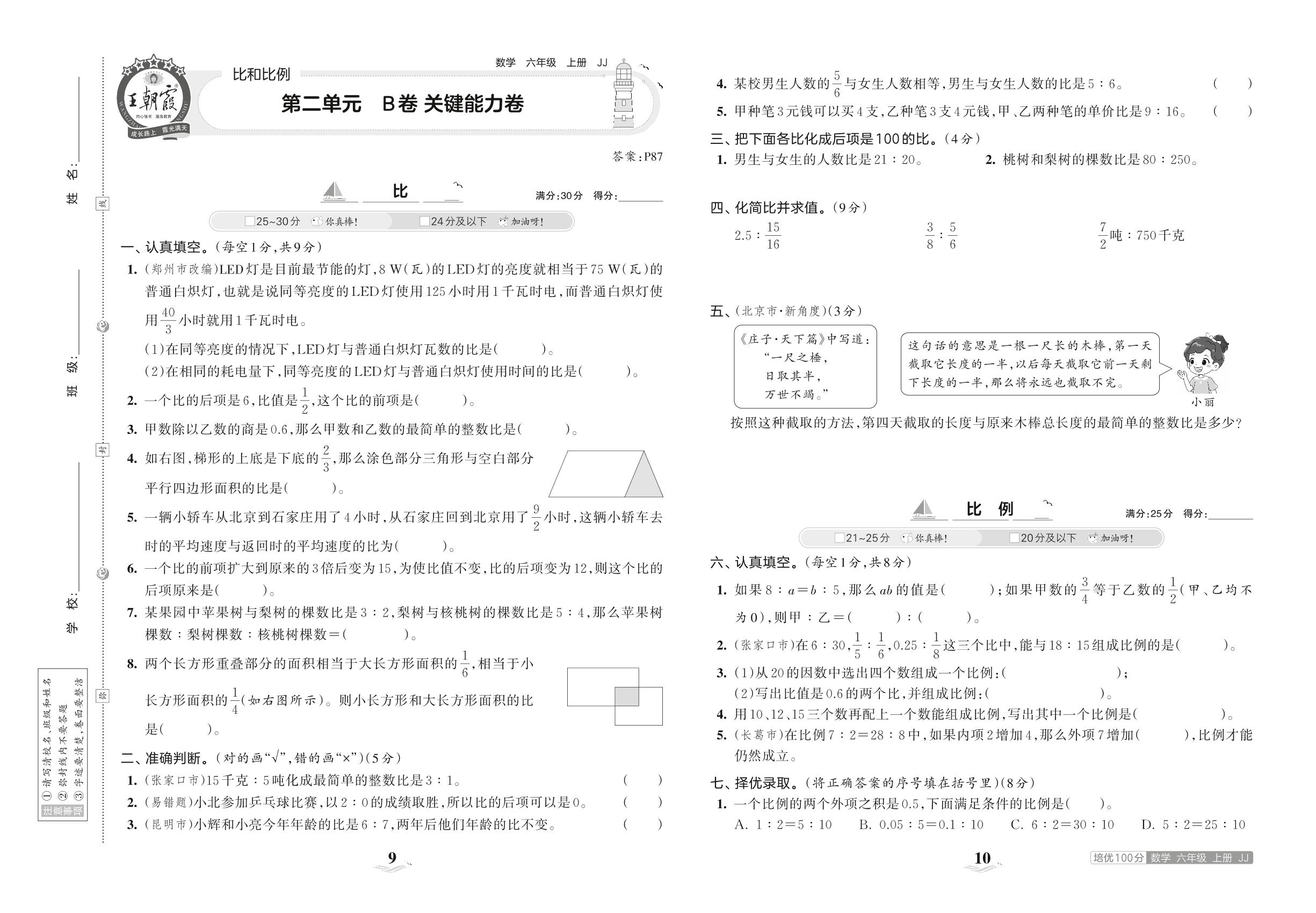 2023上册六年级数学冀教版 第二单元 B卷 关键能力卷