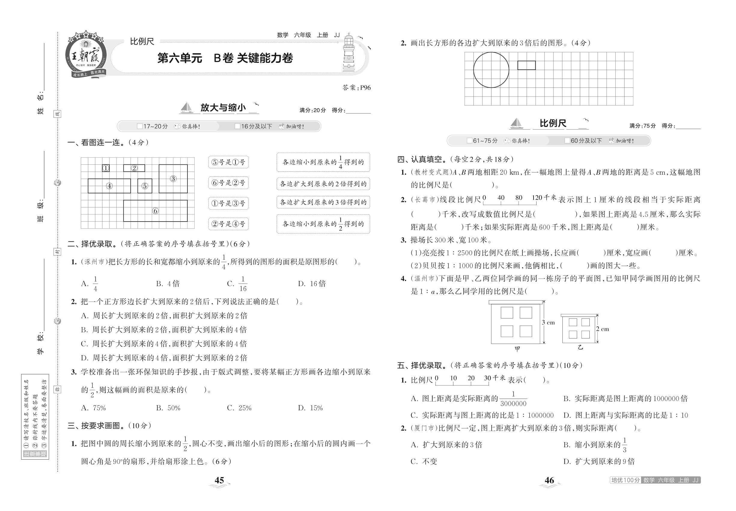 2023上册六年级数学冀教版 第六单元 B卷 关键能力卷
