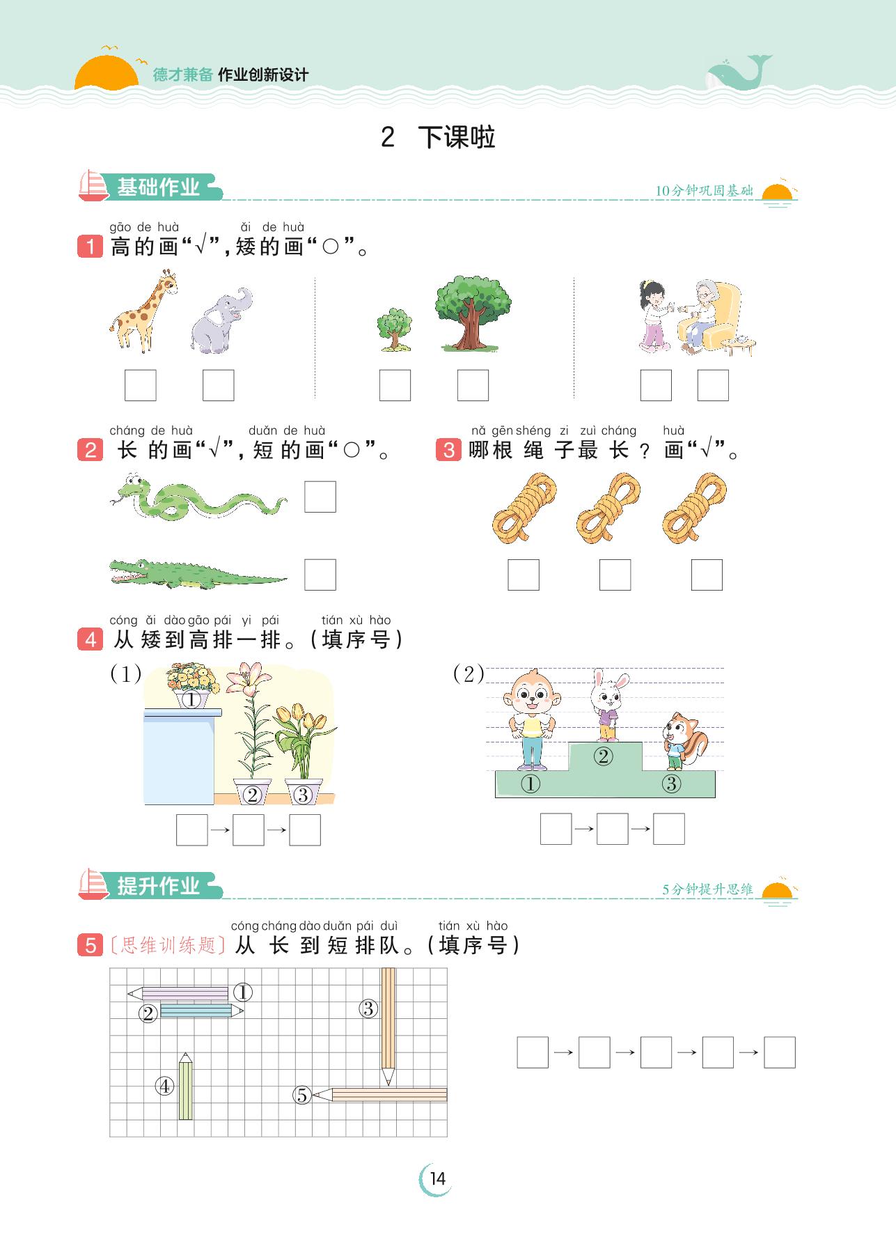 2023上册一年级数学北师版 第二单元 比较——2 下课啦