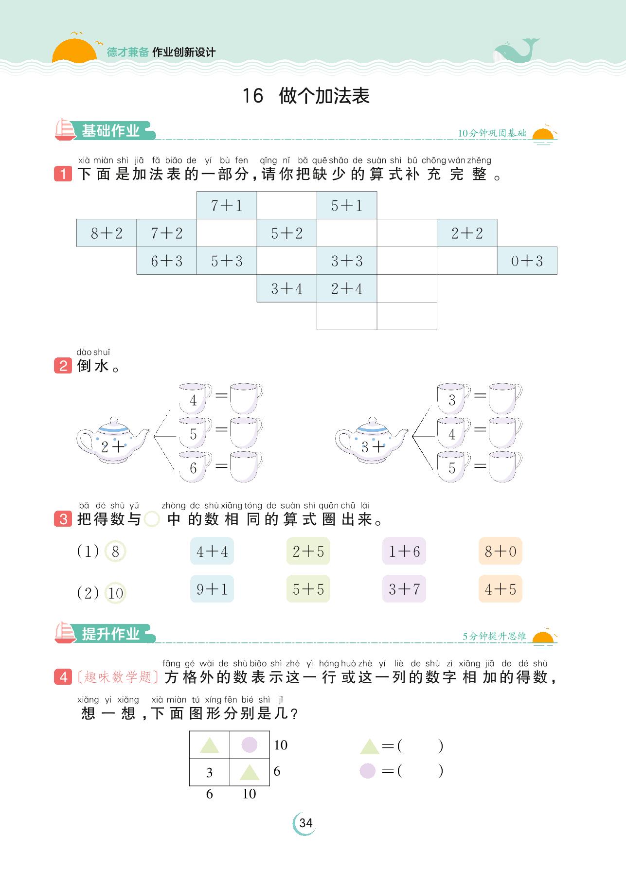 2023上册一年级数学北师版 第三单元 加与减(一)——16 做个加法表