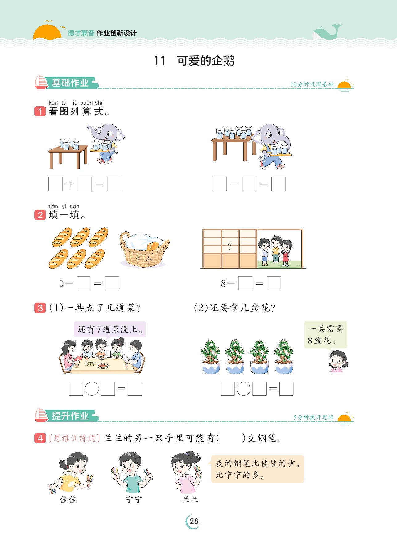 2023上册一年级数学北师版 第三单元 加与减(一)——11 可爱的企鹅