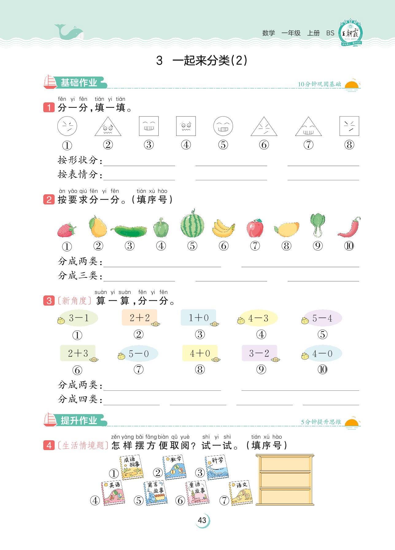 2023上册一年级数学北师版 第四单元 分类——3 一起来分类(2)