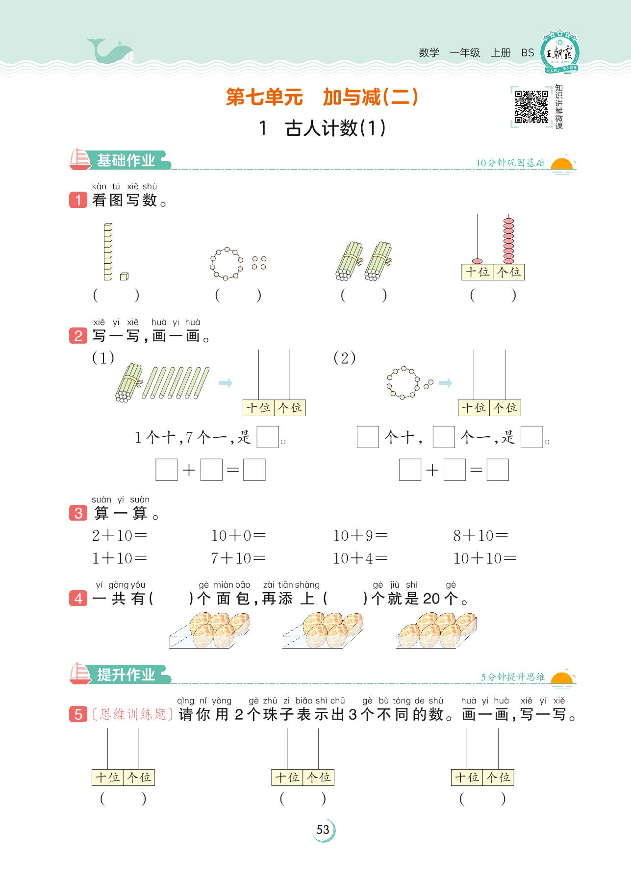 2023上册一年级数学北师版 第七单元 加与减(二) ——1 古人计数(1)