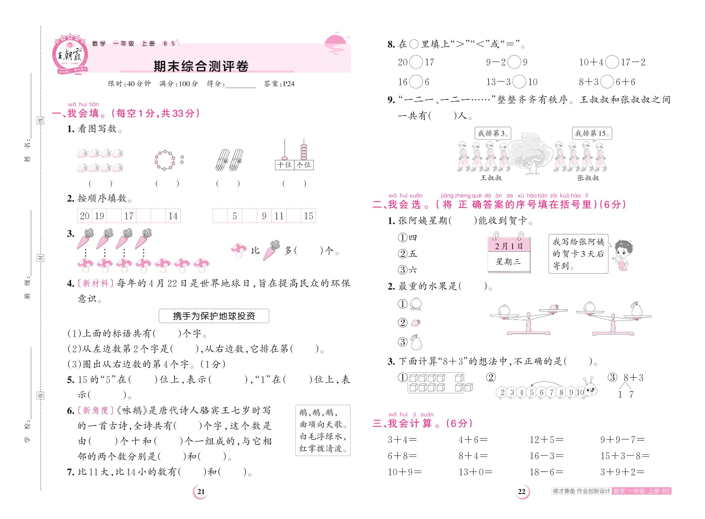 2023上册一年级数学北师版 期末综合测评卷