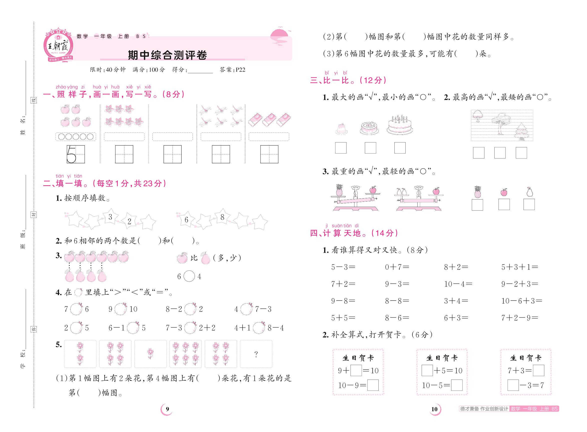2023上册一年级数学北师版 期中综合测评卷