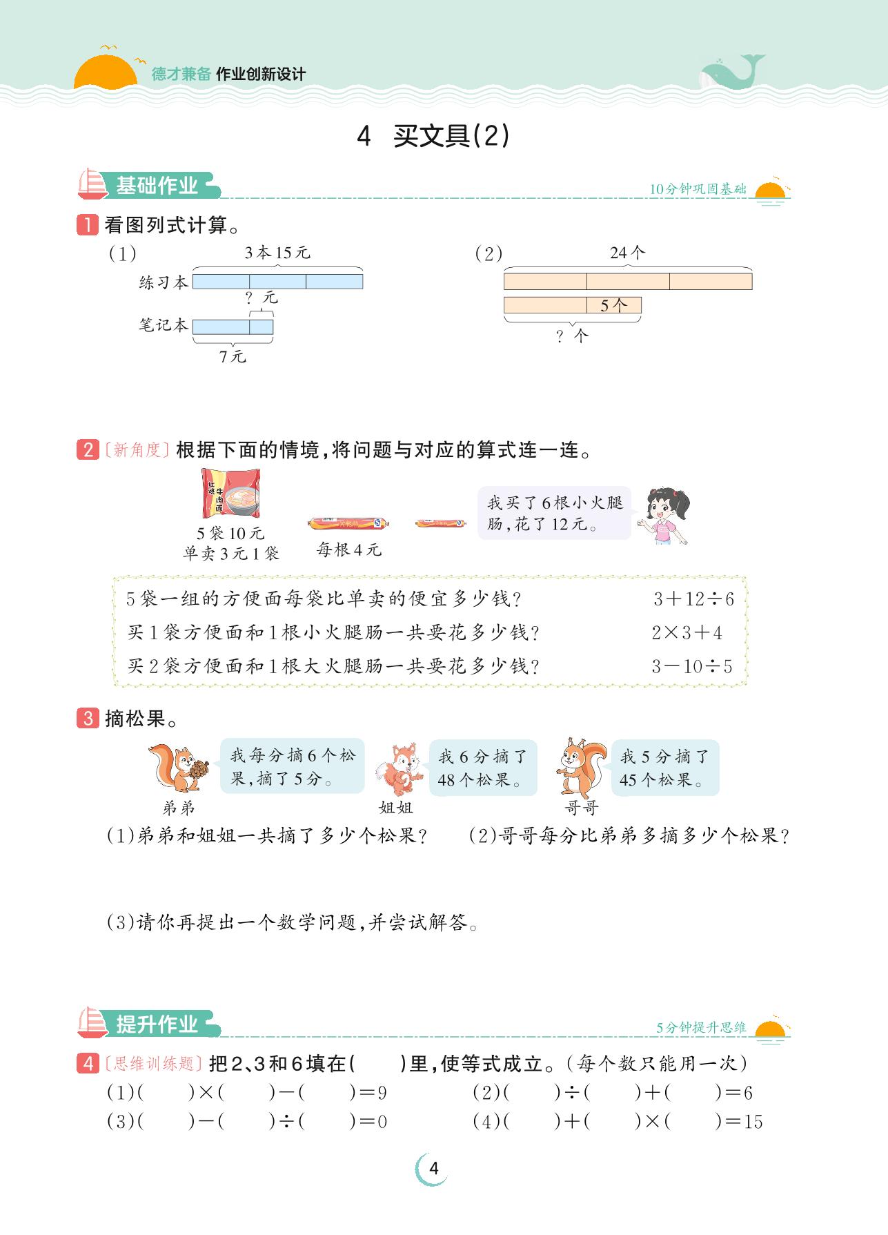 2023上册三年级数学北师版 第一单元 混合运算——4 买文具(2)