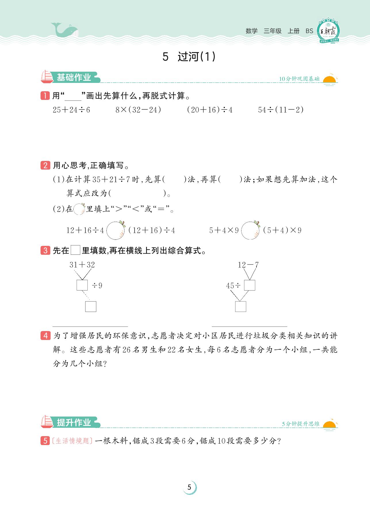 2023上册三年级数学北师版 第一单元 混合运算——5 过河(1)