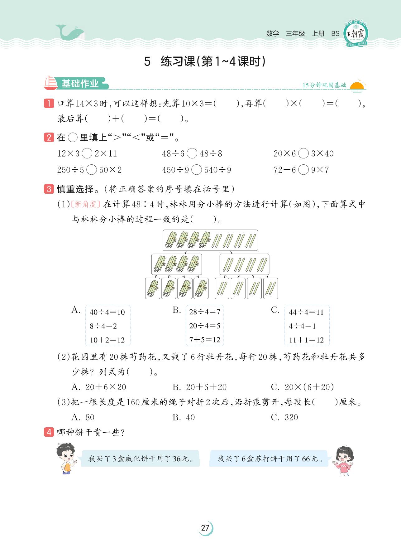 2023上册三年级数学北师版 第四单元 乘与除——5 练习课(第1~4课时)