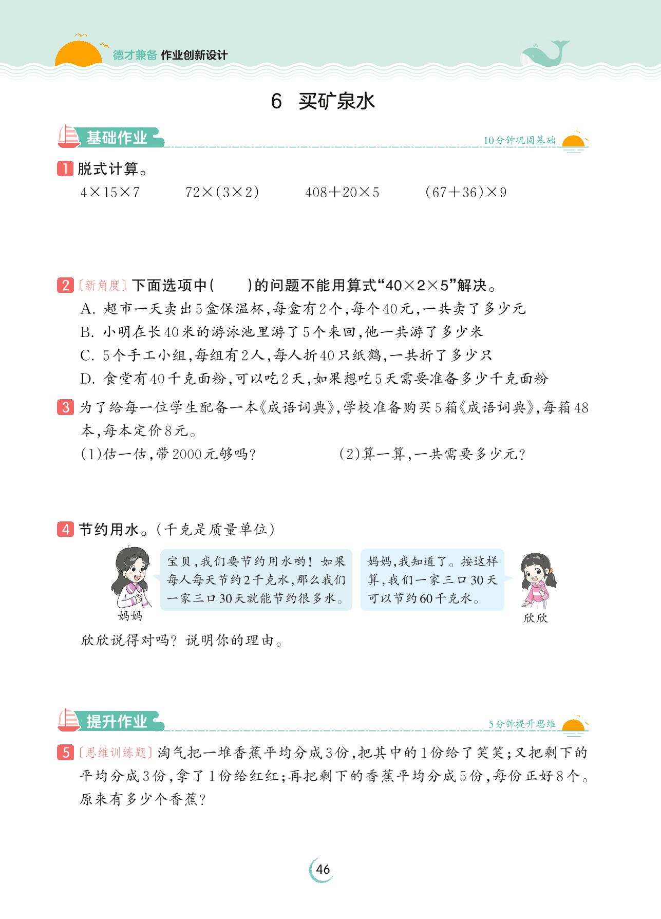 2023上册三年级数学北师版 第六单元 乘法——6 买矿泉水