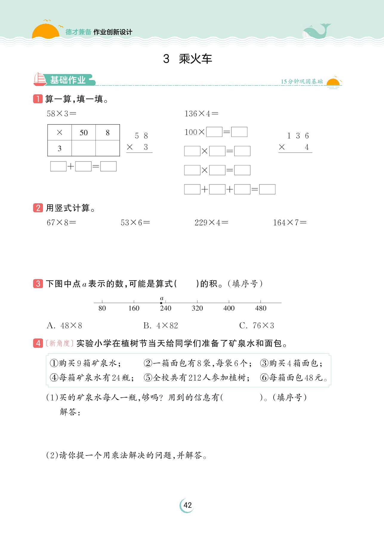 2023上册三年级数学北师版 第六单元 乘法——3 乘火车