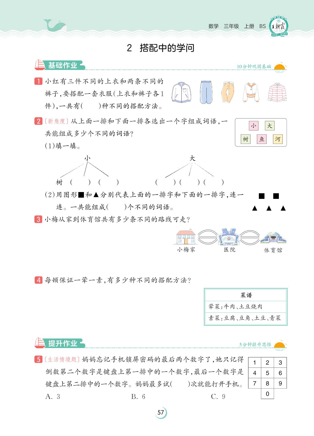 2023上册三年级数学北师版 数学好玩——2 搭配中的学问