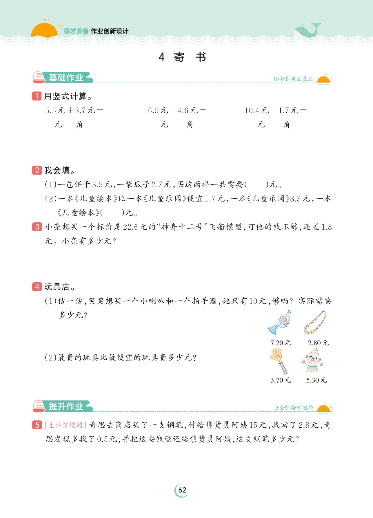 2023上册三年级数学北师版 第八单元 认识小数——4 寄书