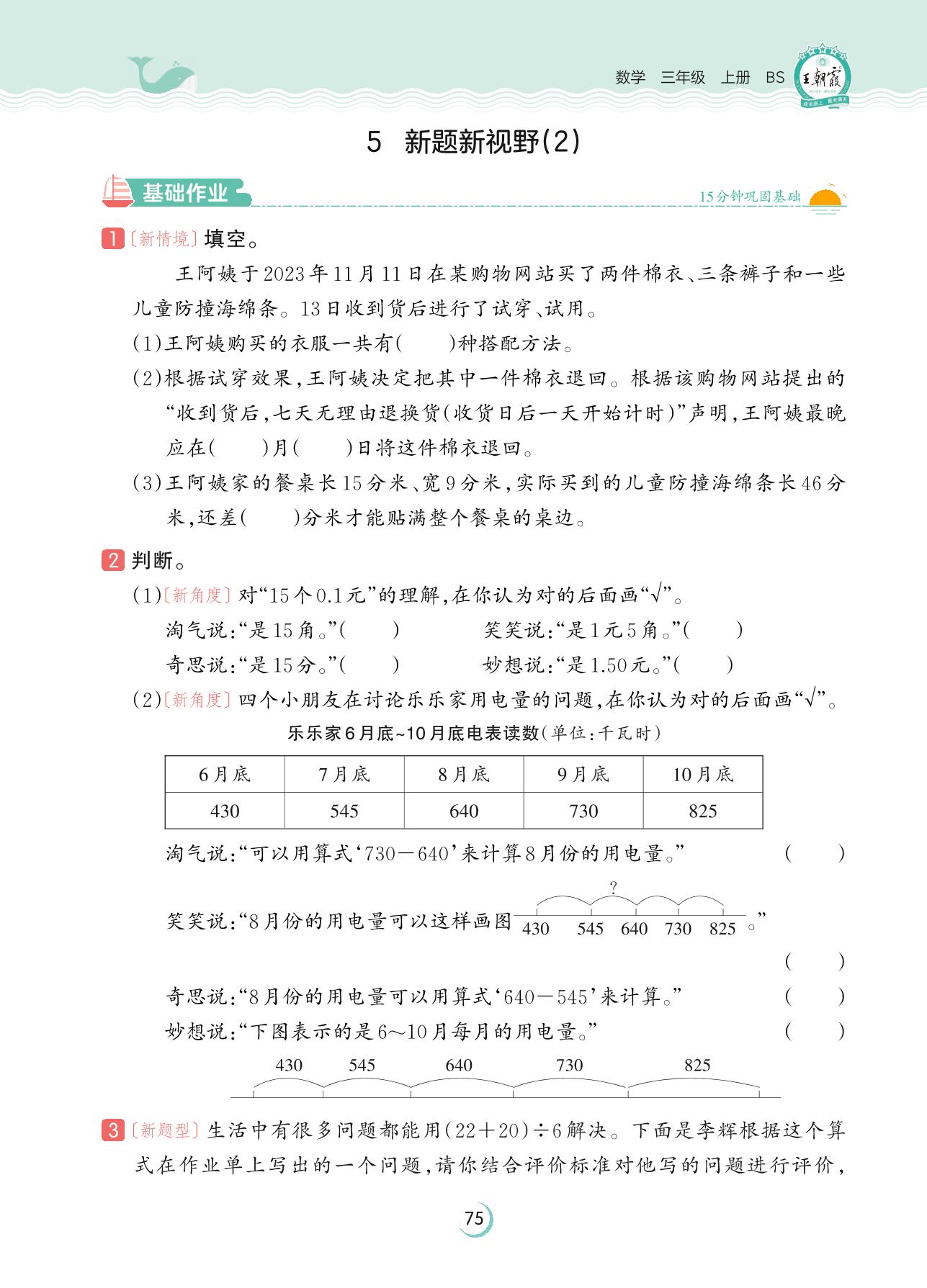 2023上册三年级数学北师版 总复习——5 新题新视野(2)