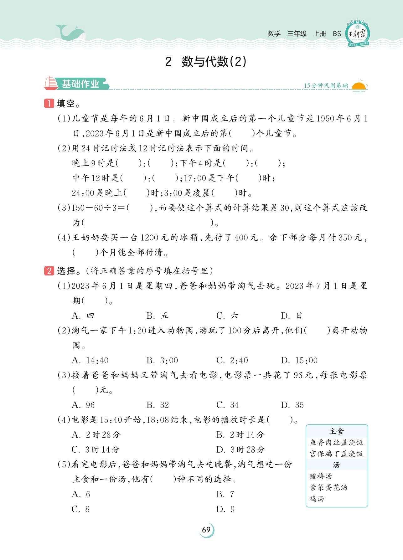 2023上册三年级数学北师版 总复习——2 数与代数(2)