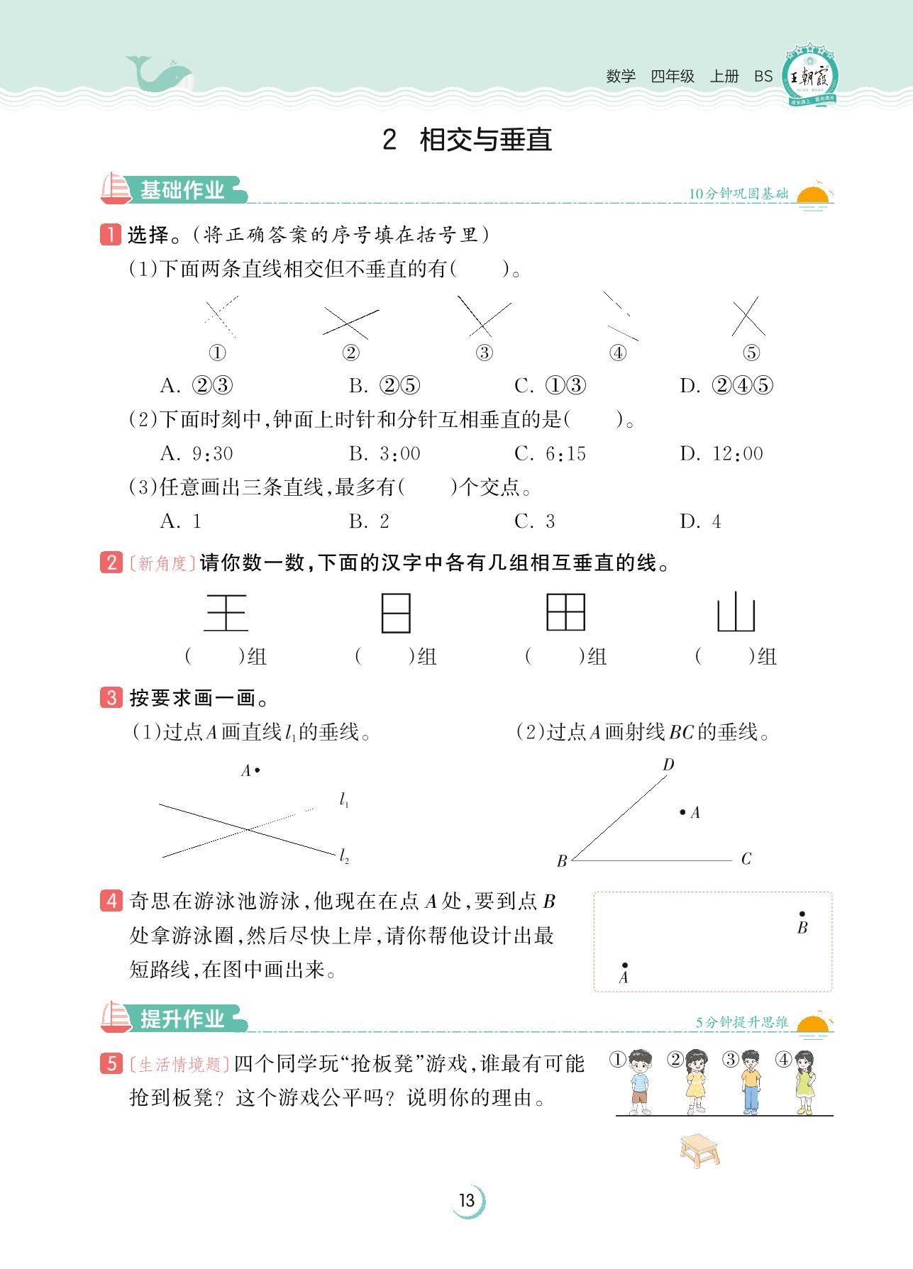 2023上册四年级数学北师版 第二单元 线与角——2 相交与垂直