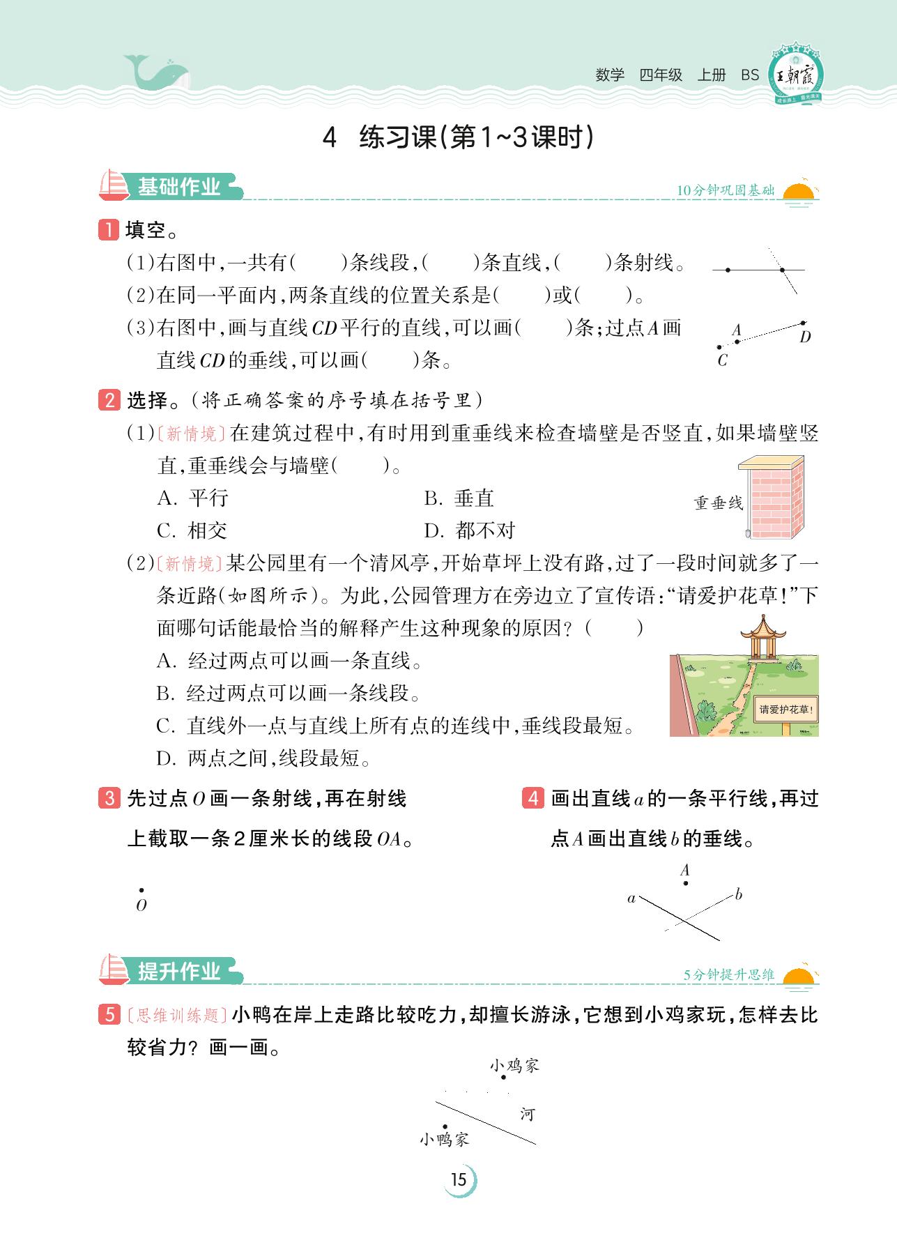 2023上册四年级数学北师版 第二单元 线与角——4 练习课(第1~3课时)