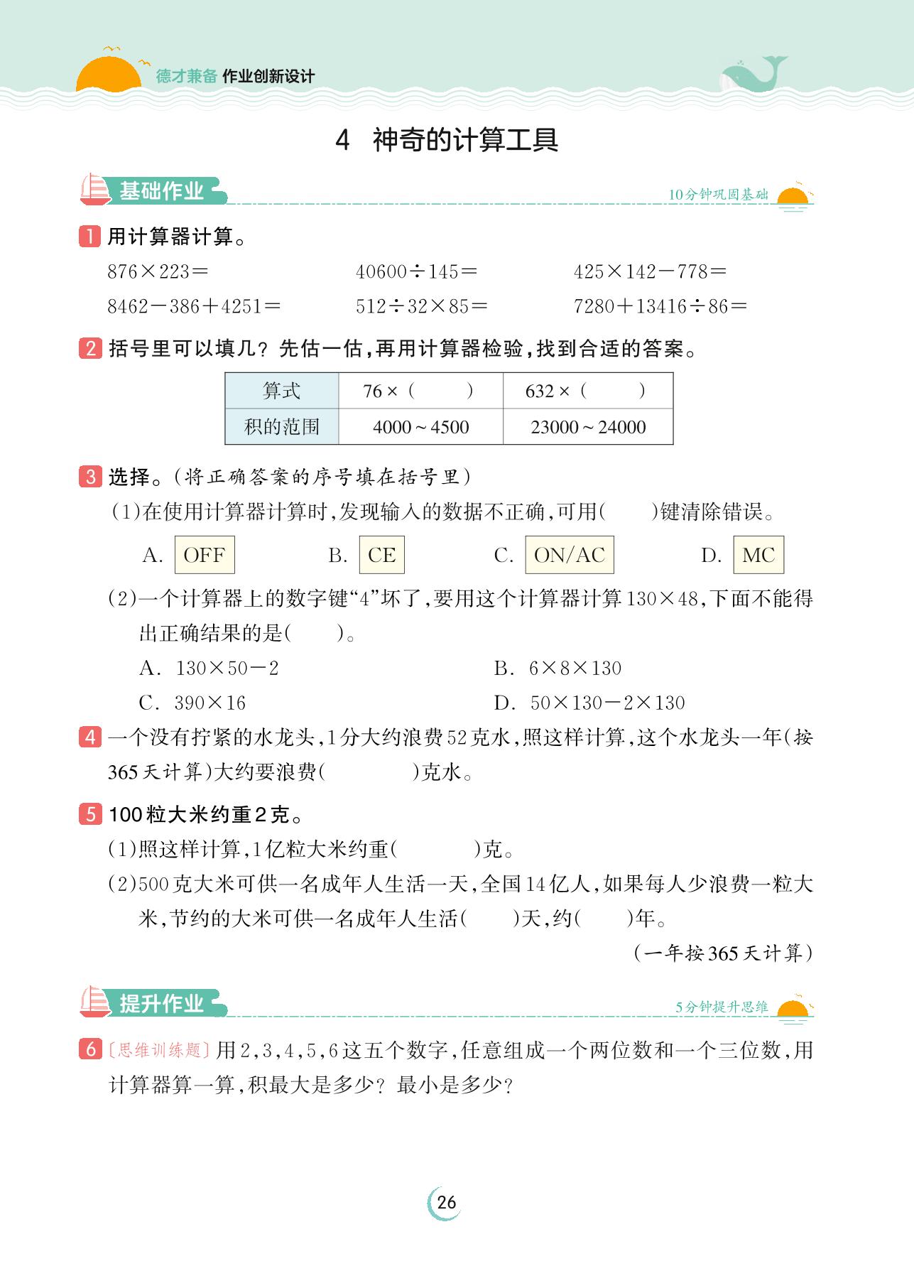 2023上册四年级数学北师版 第三单元 乘法——4 神奇的计算工具