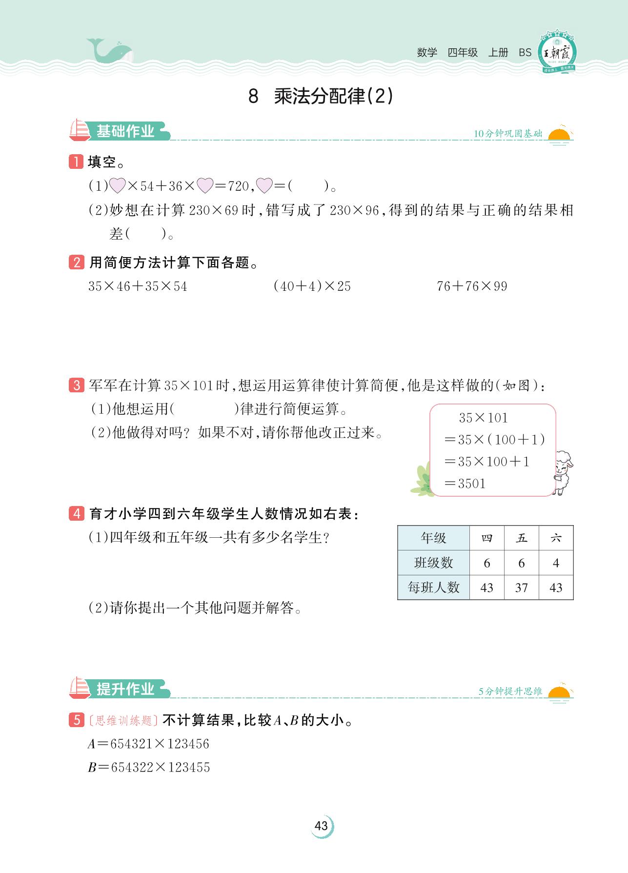 2023上册四年级数学北师版 第四单元 运算律——8 乘法分配律(2)
