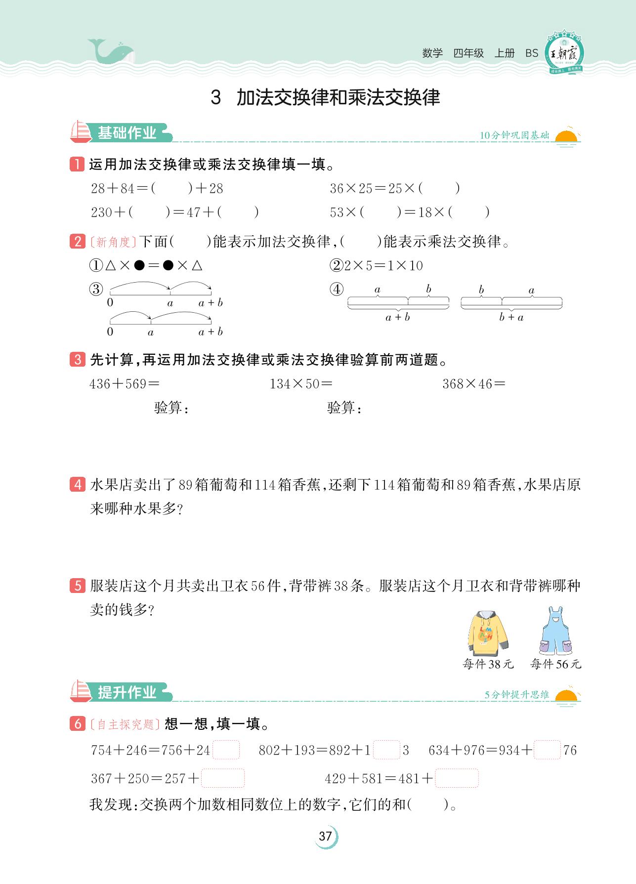 2023上册四年级数学北师版 第四单元 运算律——3 加法交换律和乘法交换律