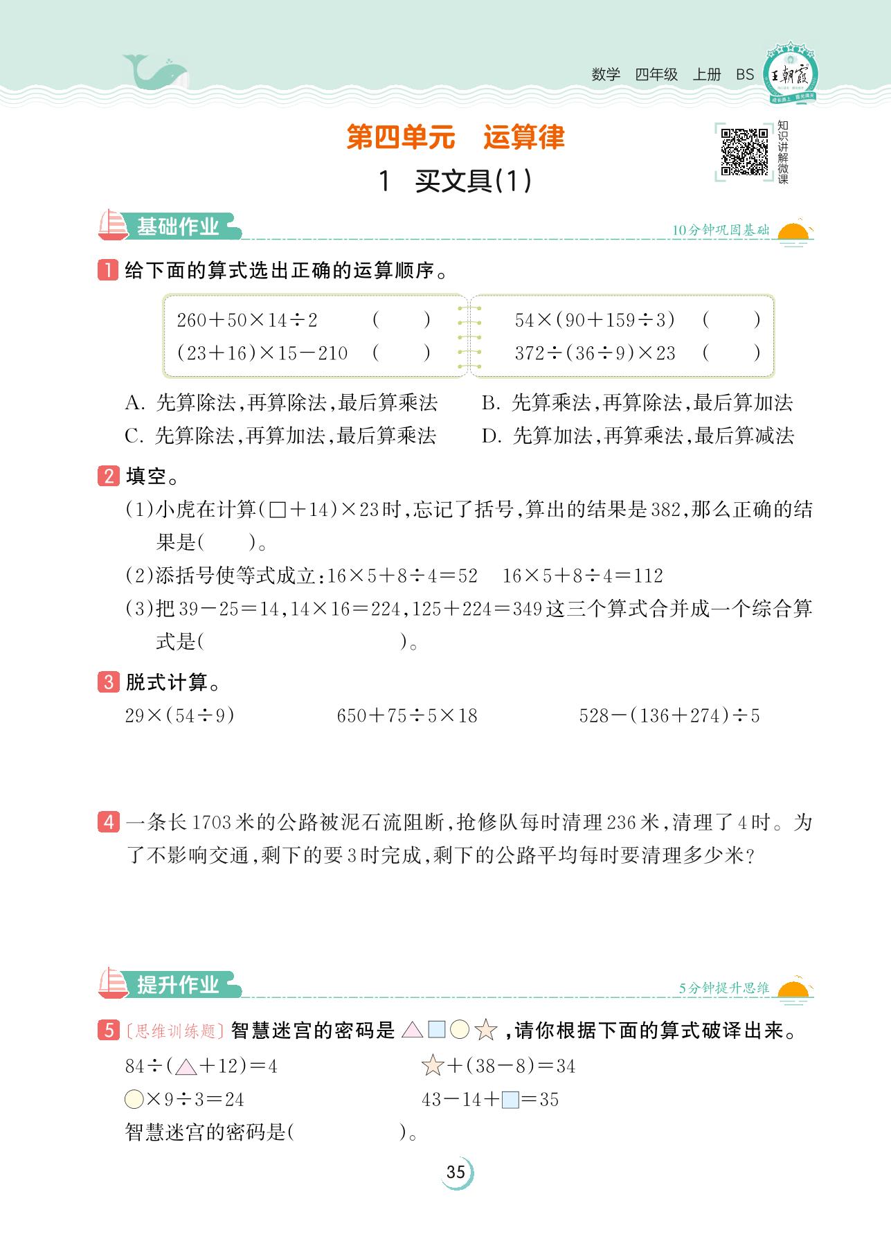 2023上册四年级数学北师版 第四单元 运算律——1 买文具(1)