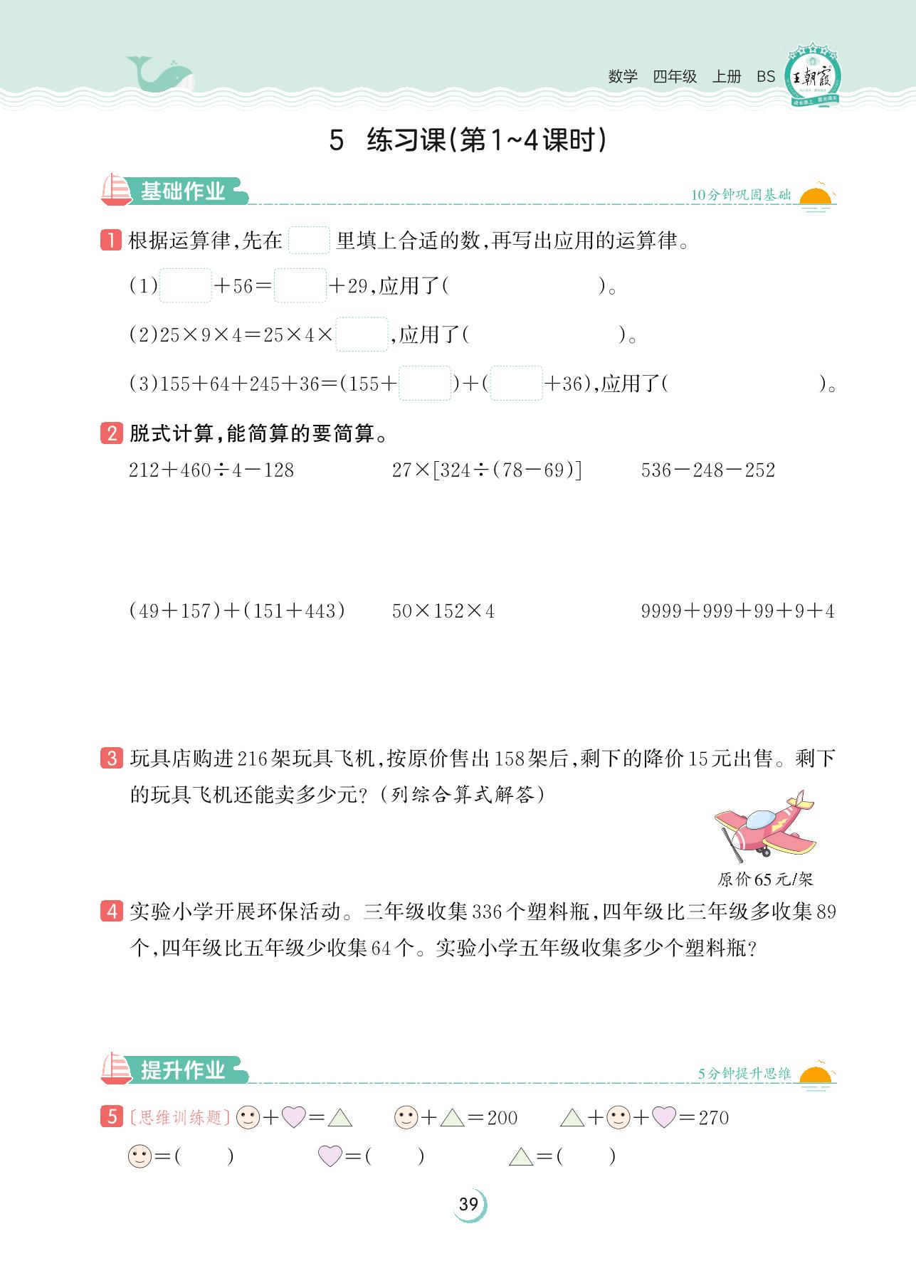 2023上册四年级数学北师版 第四单元 运算律——5 练习课(第1~4课时)