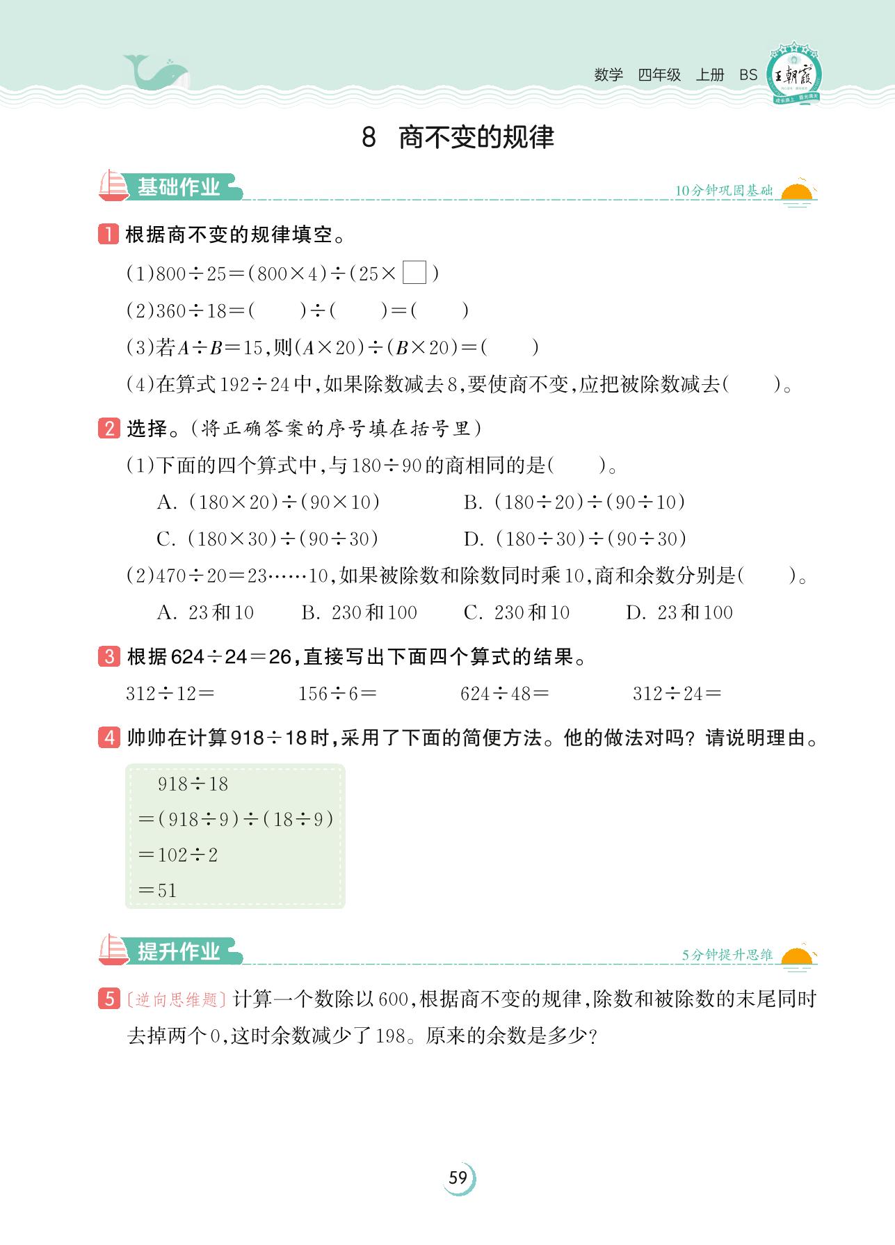 2023上册四年级数学北师版 第六单元 除法——8 商不变的规律