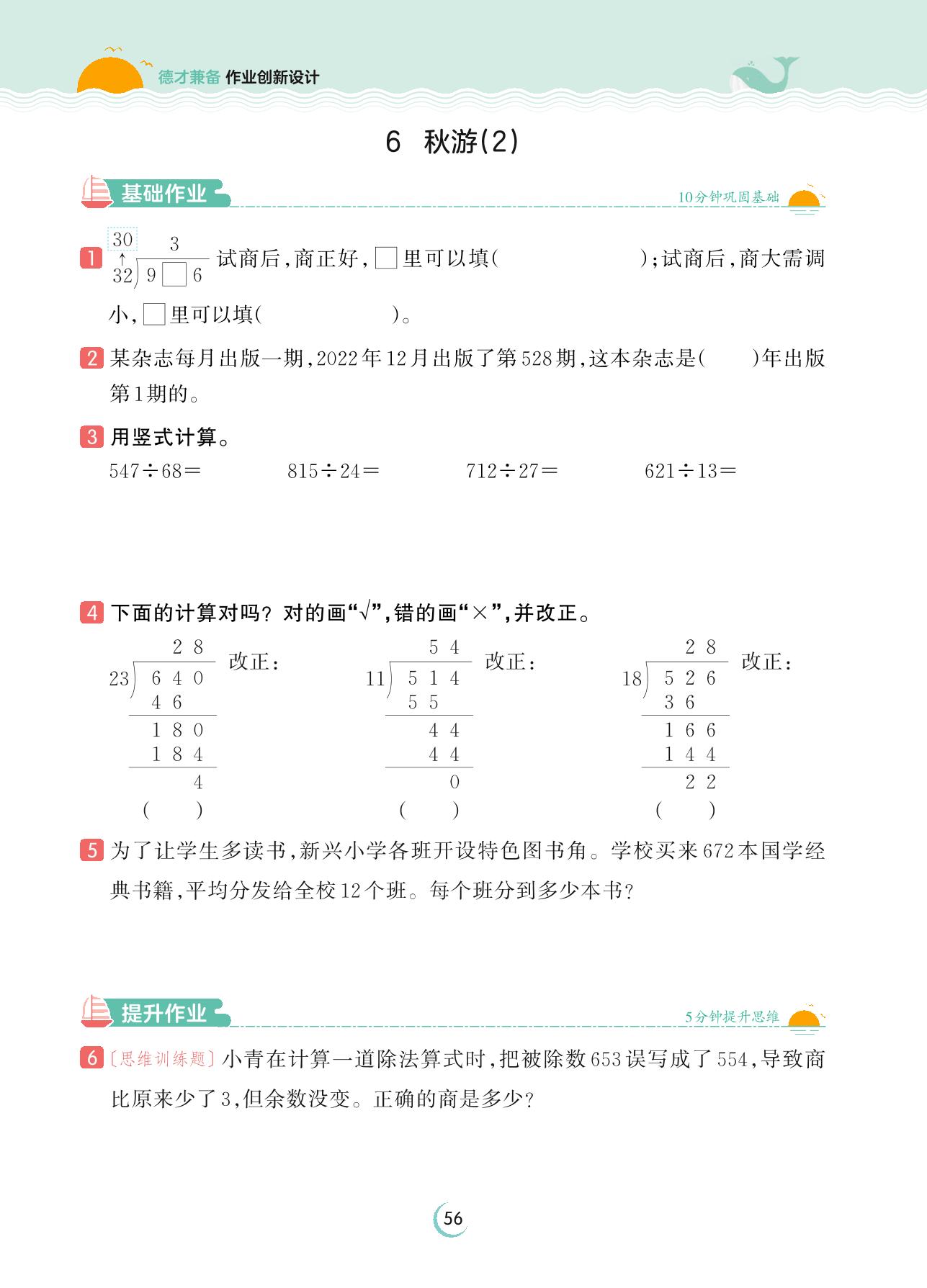 2023上册四年级数学北师版 第六单元 除法——6 秋游(2)