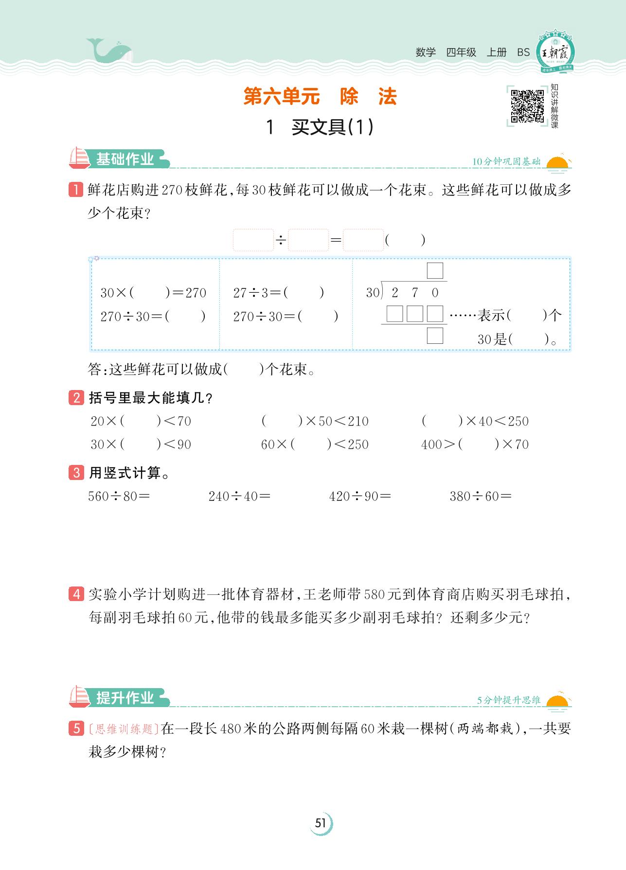 2023上册四年级数学北师版 第六单元 除法——1 买文具(1)