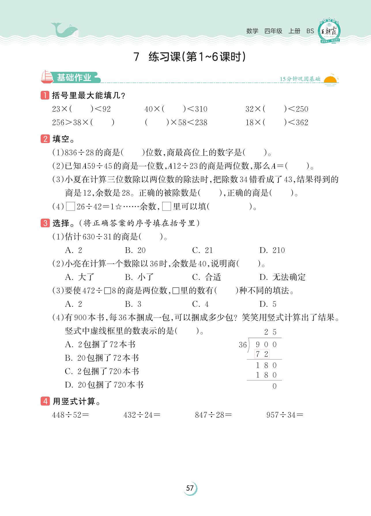2023上册四年级数学北师版 第六单元 除法——7 练习课(第1~6课时)