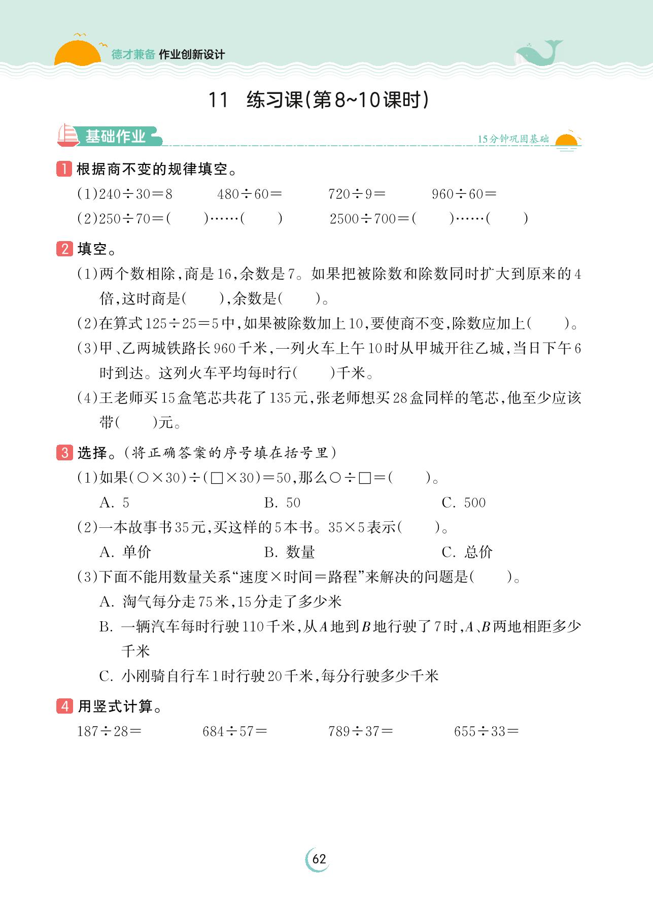 2023上册四年级数学北师版 第六单元 除法——11 练习课(第8~10课时)