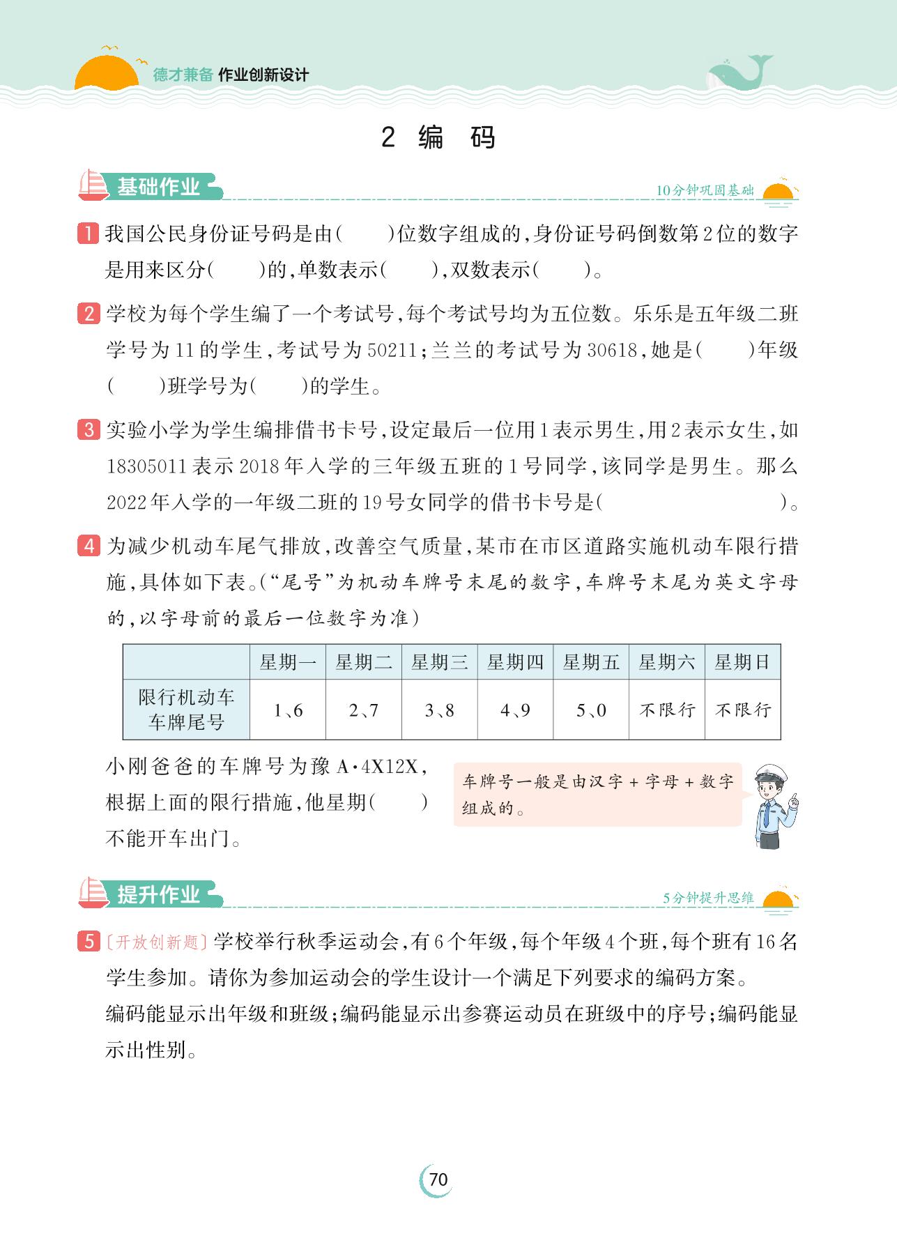 2023上册四年级数学北师版 数学好玩 ——2 编码