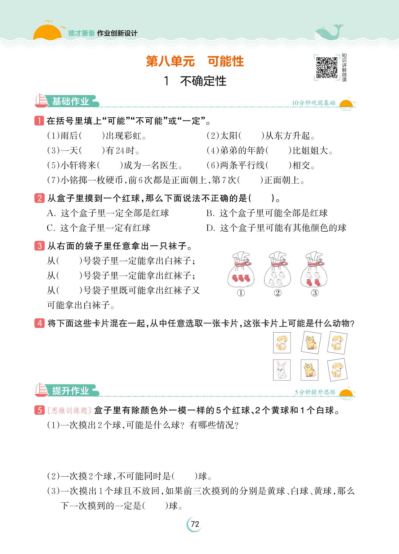 2023上册四年级数学北师版 第八单元 可能性——1 不确定性