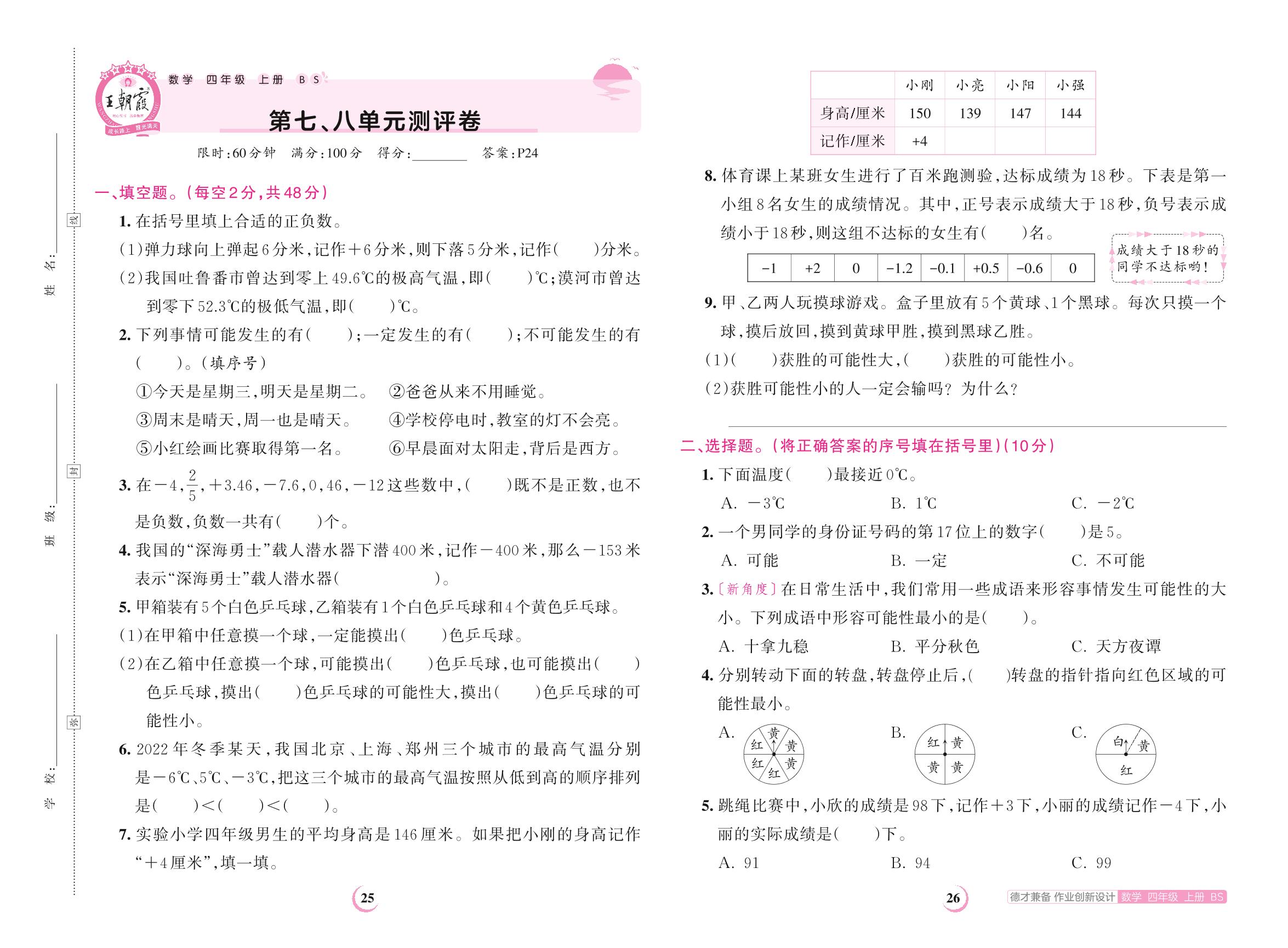 2023上册四年级数学北师版 第七、八单元测评卷