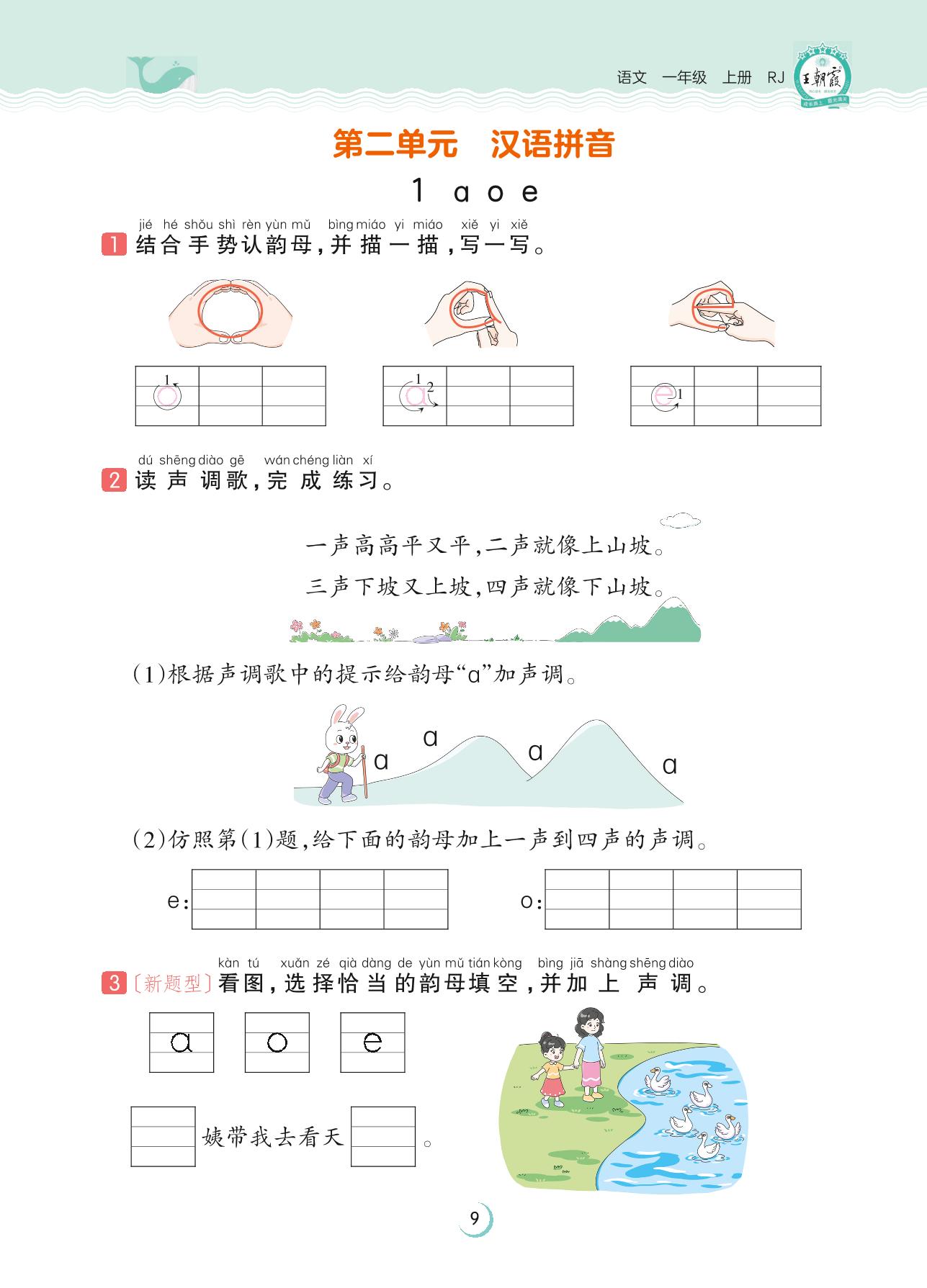 2023上册一年级语文人教版 第二单元 汉语拼音——1 ɑ o e