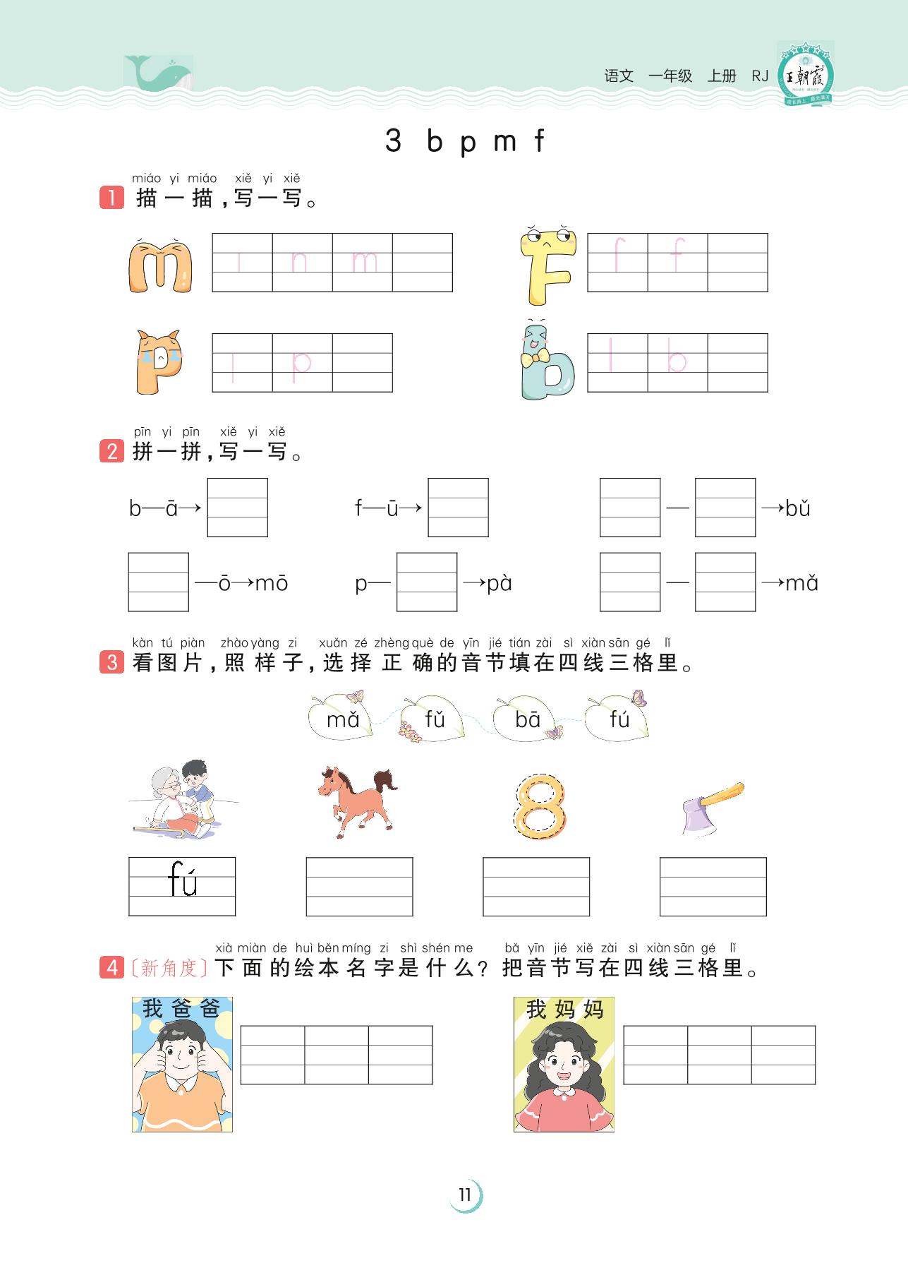 2023上册一年级语文人教版 第二单元 汉语拼音——3 b p m f