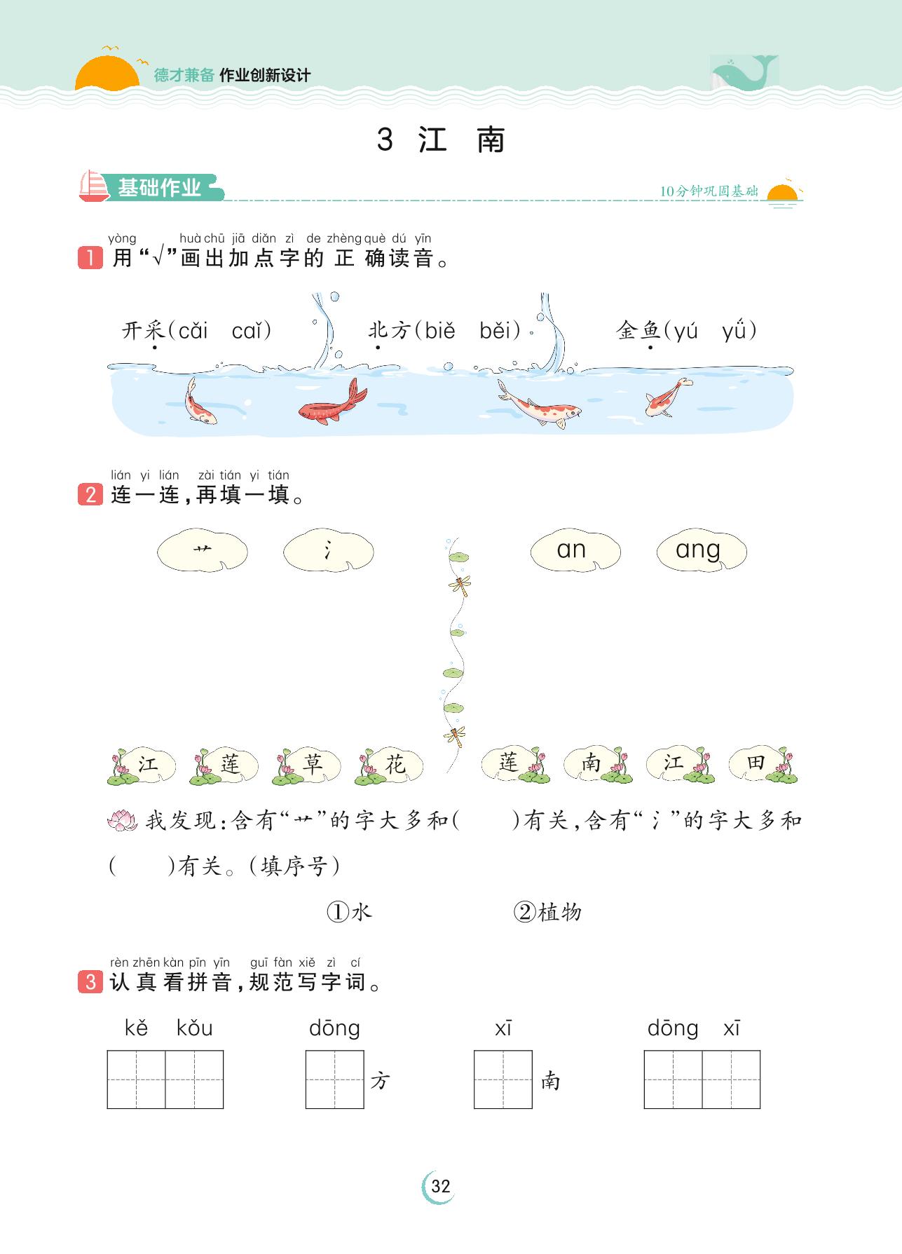2023上册一年级语文人教版 第四单元 自然——3 江南