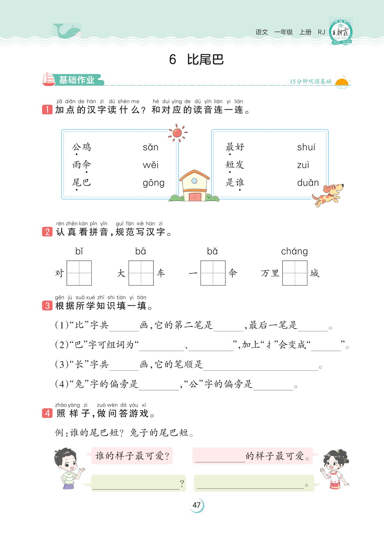 2023上册一年级语文人教版 第六单元 想象——6 比尾巴