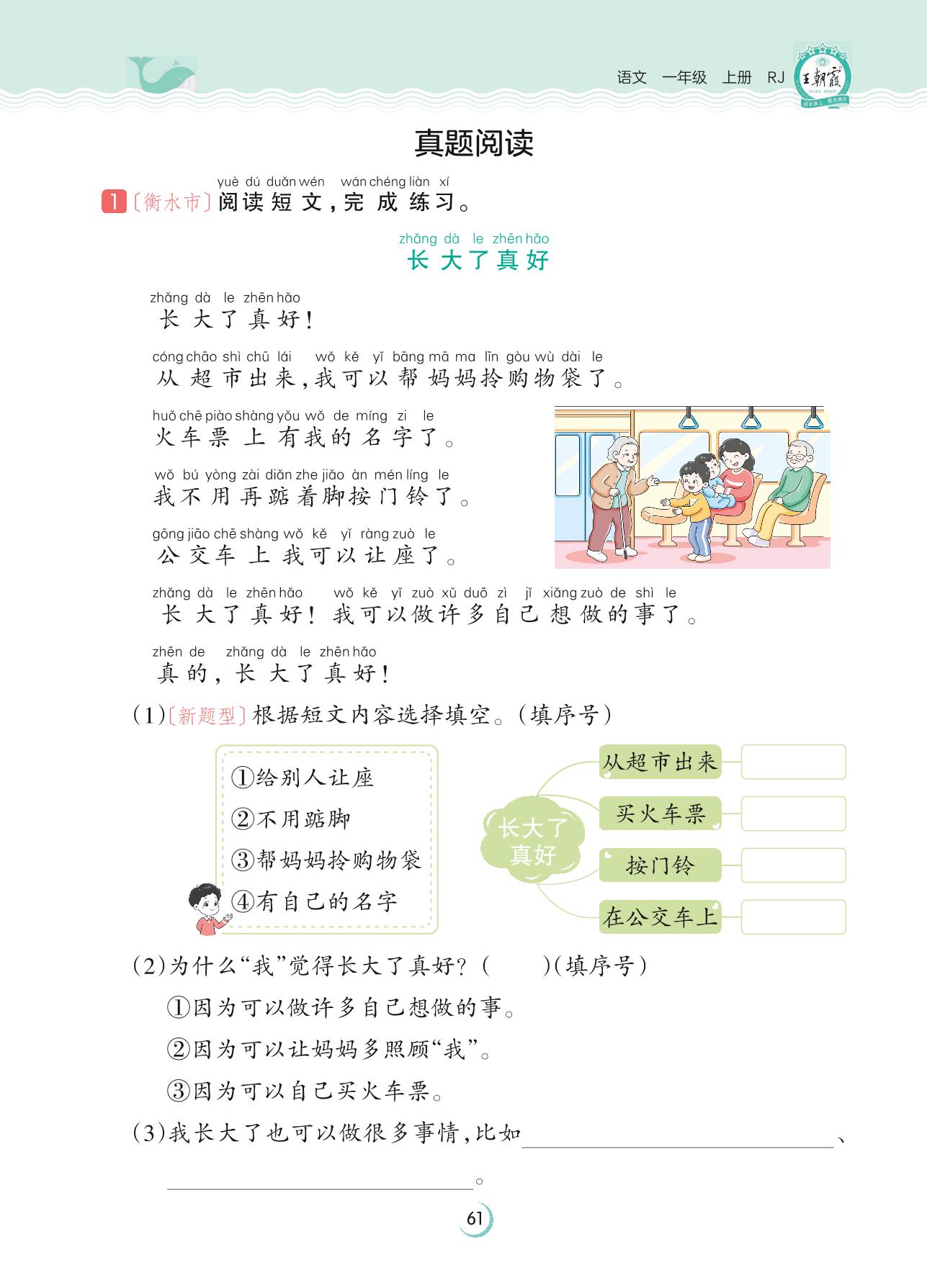 2023上册一年级语文人教版 第七单元 儿童生活——真题阅读