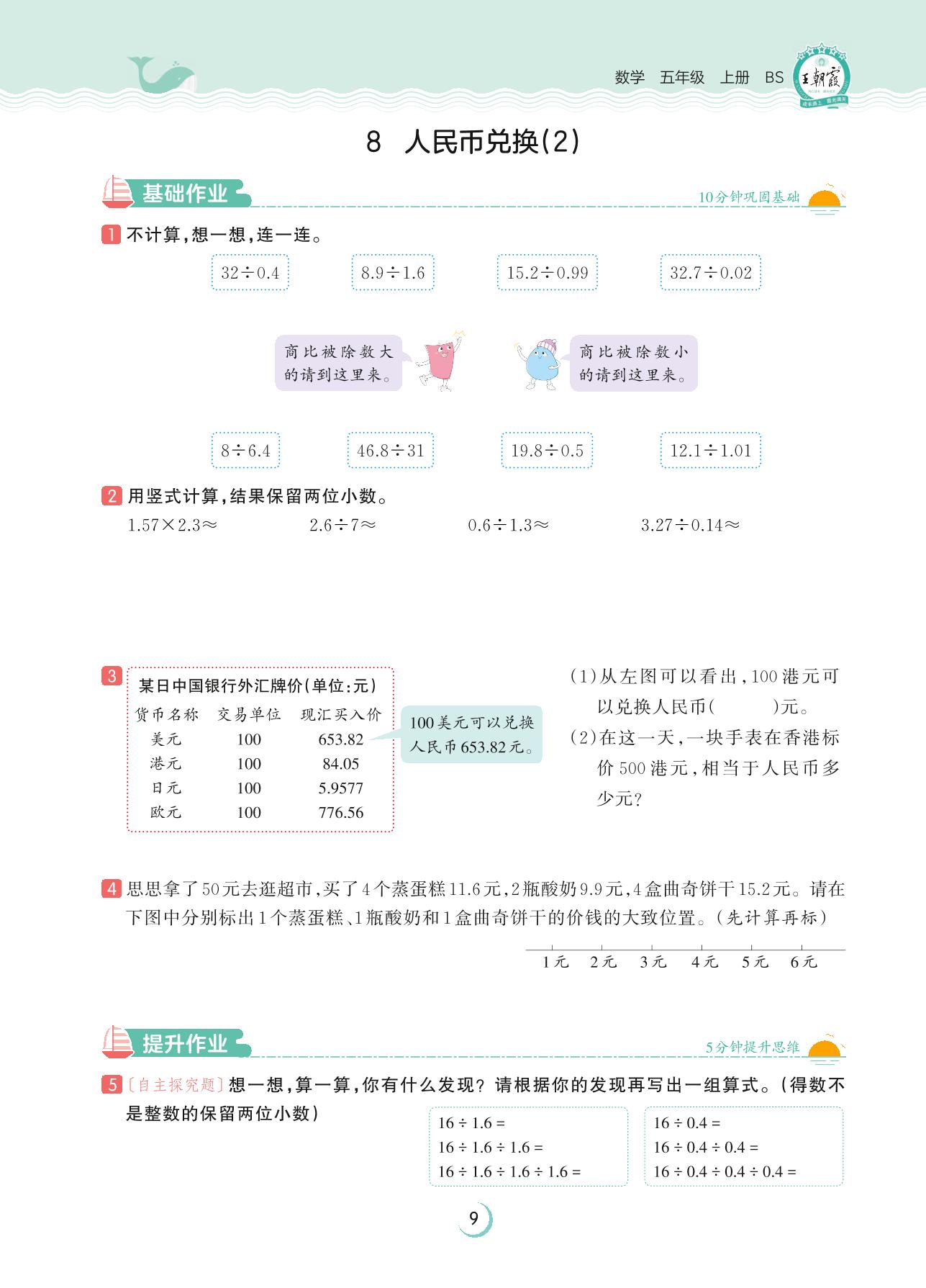 2023上册五年级数学北师版 第一单元 小数除法——8 人民币兑换(2)