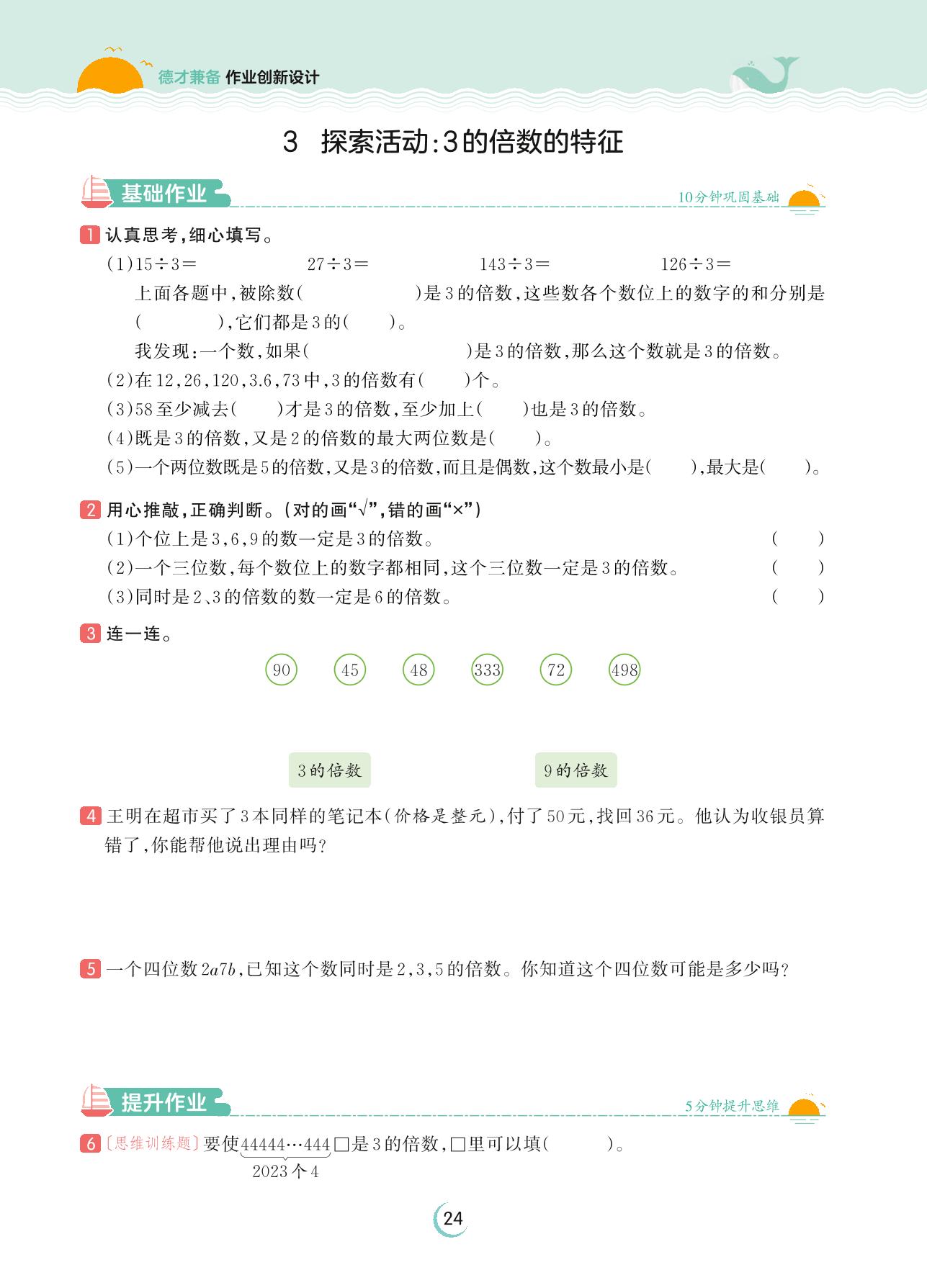 2023上册五年级数学北师版 第三单元 倍数与因数——3 探索活动:3的倍数的特征