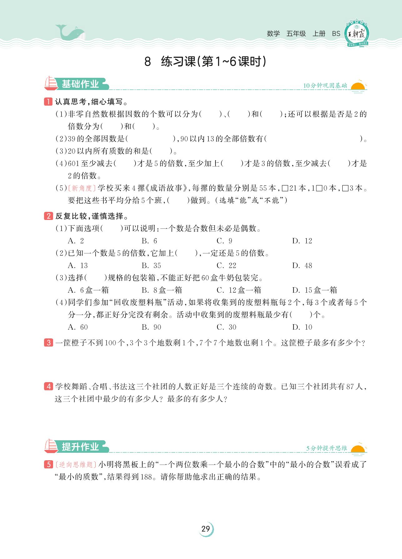 2023上册五年级数学北师版 第三单元 倍数与因数——8 练习课(第1~6课时)