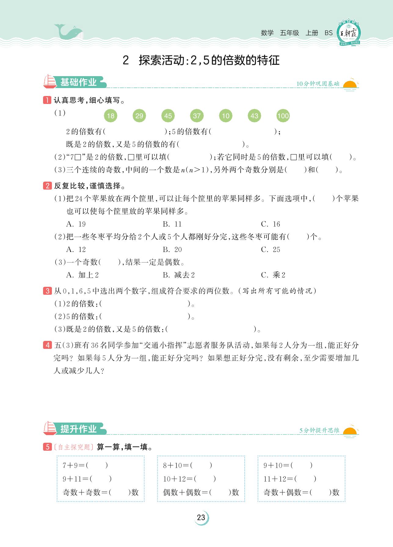 2023上册五年级数学北师版 第三单元 倍数与因数——2 探索活动:2,5的倍数的特征