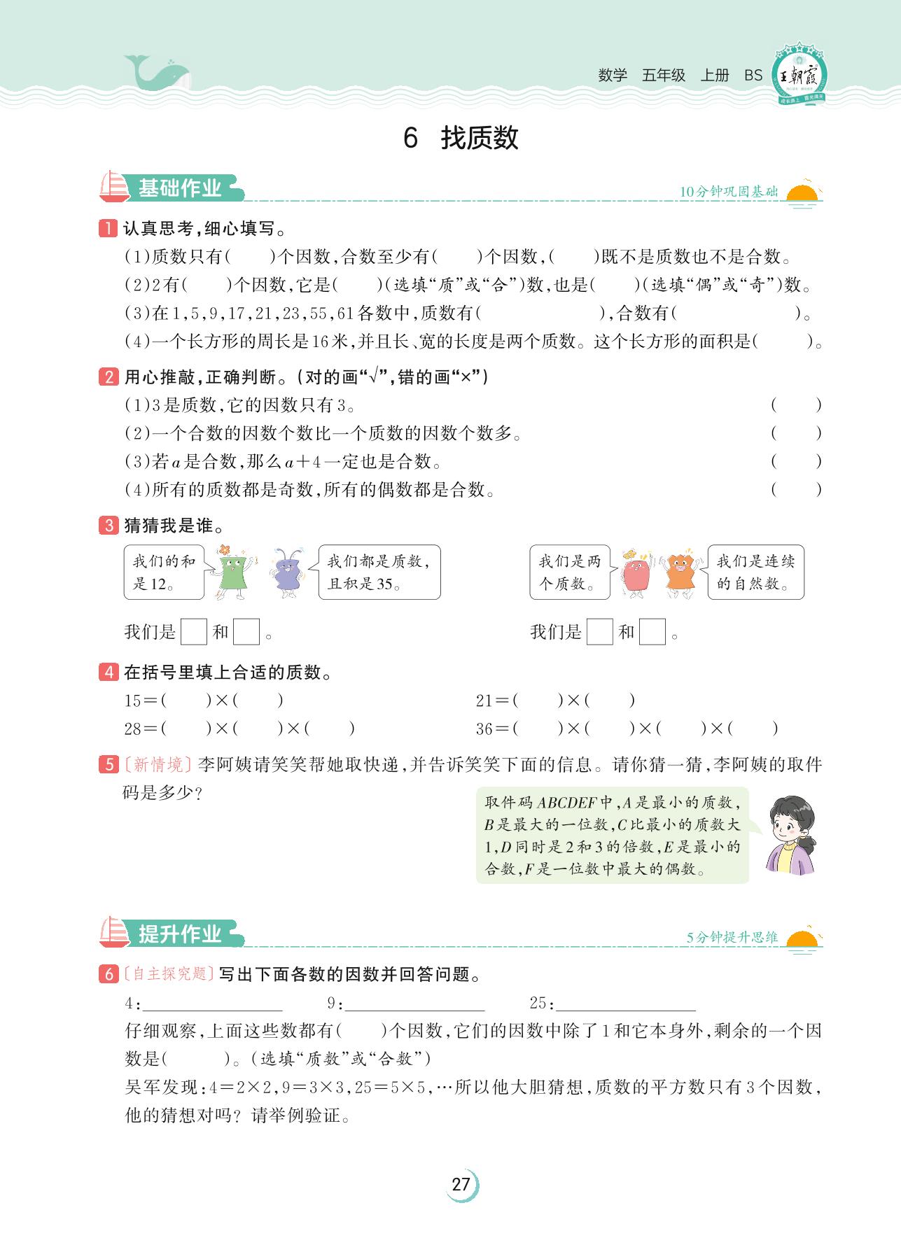 2023上册五年级数学北师版 第三单元 倍数与因数——6 找质数
