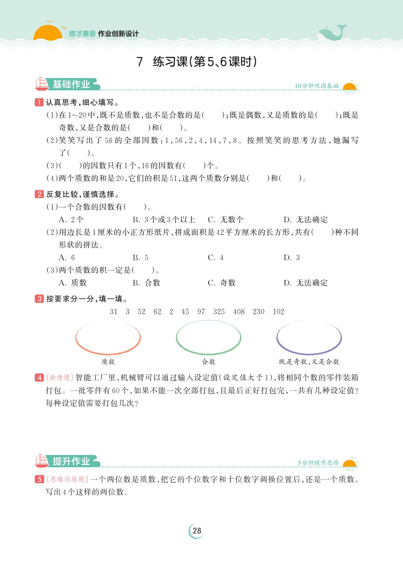 2023上册五年级数学北师版 第三单元 倍数与因数——7 练习课(第5、6课时)